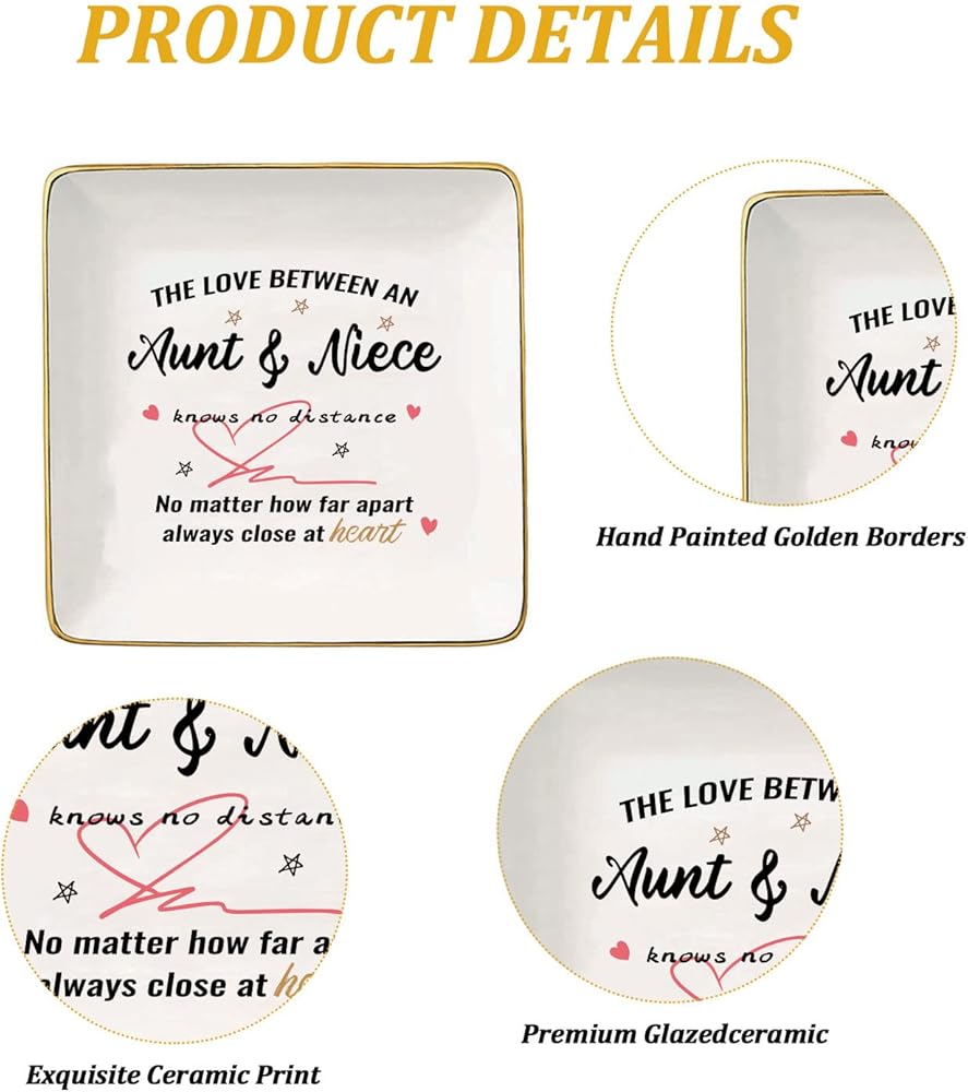 • نمط التصميم -- هدية صينية مجوهرات شخصية للعمة مع قلب الحب وكلمات فنية جميلة. إن هدايا ابنة الأخ من طراز طبق مجوهرات العمة كلاسيكي وخالد، حامل خاتم هدايا الخالة وابنة الأخ هو هدايا رائعة لابن الأخ وابنة الأخ والعمة والعمة والعمة والجميلة التي تعبر عن الحب ، وسوف تفكر بها دائمًا ، ولكن تجعل خمتك تعرف أن ابنة أختك وابنة أخت هما معا في روح.
