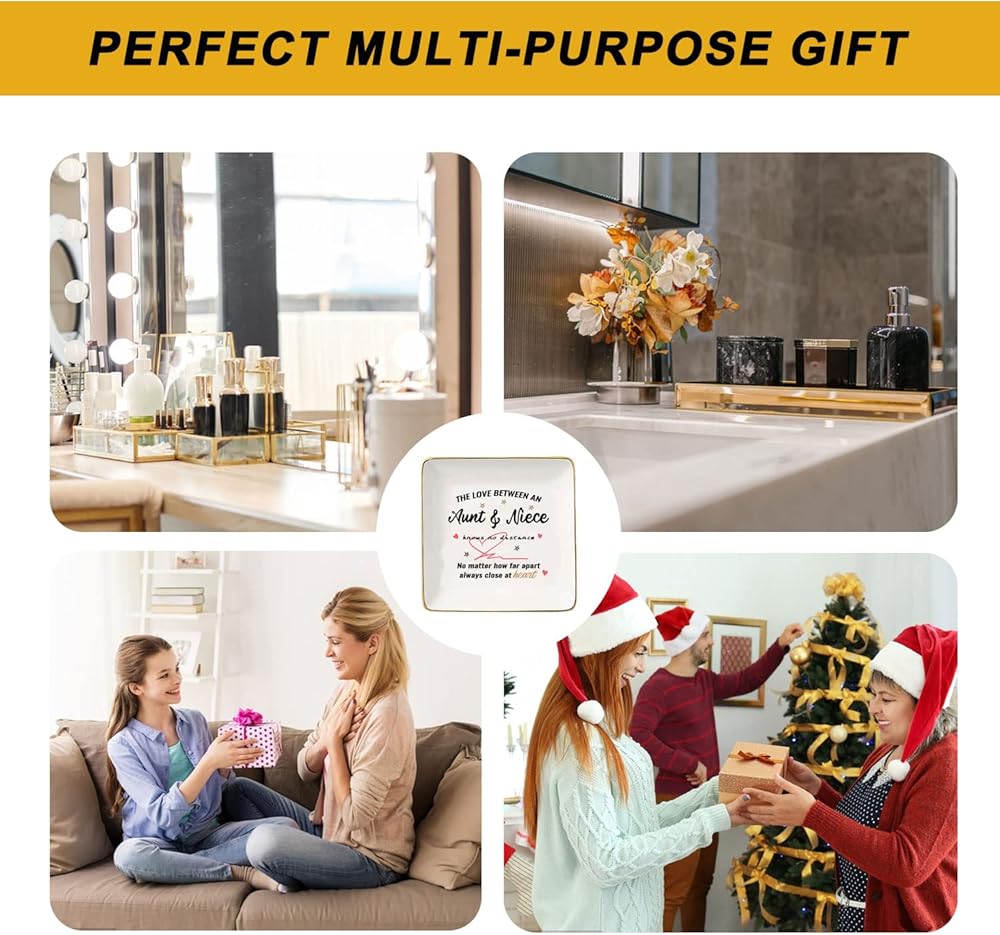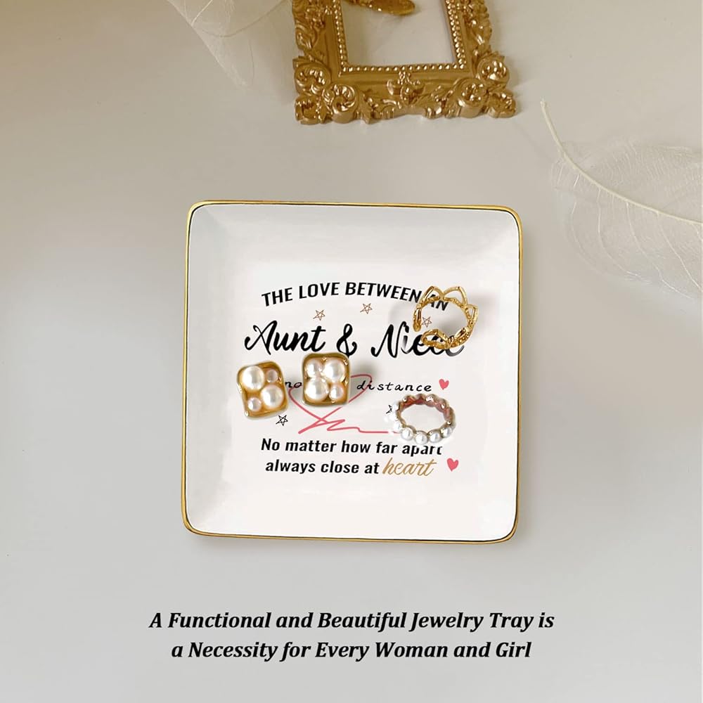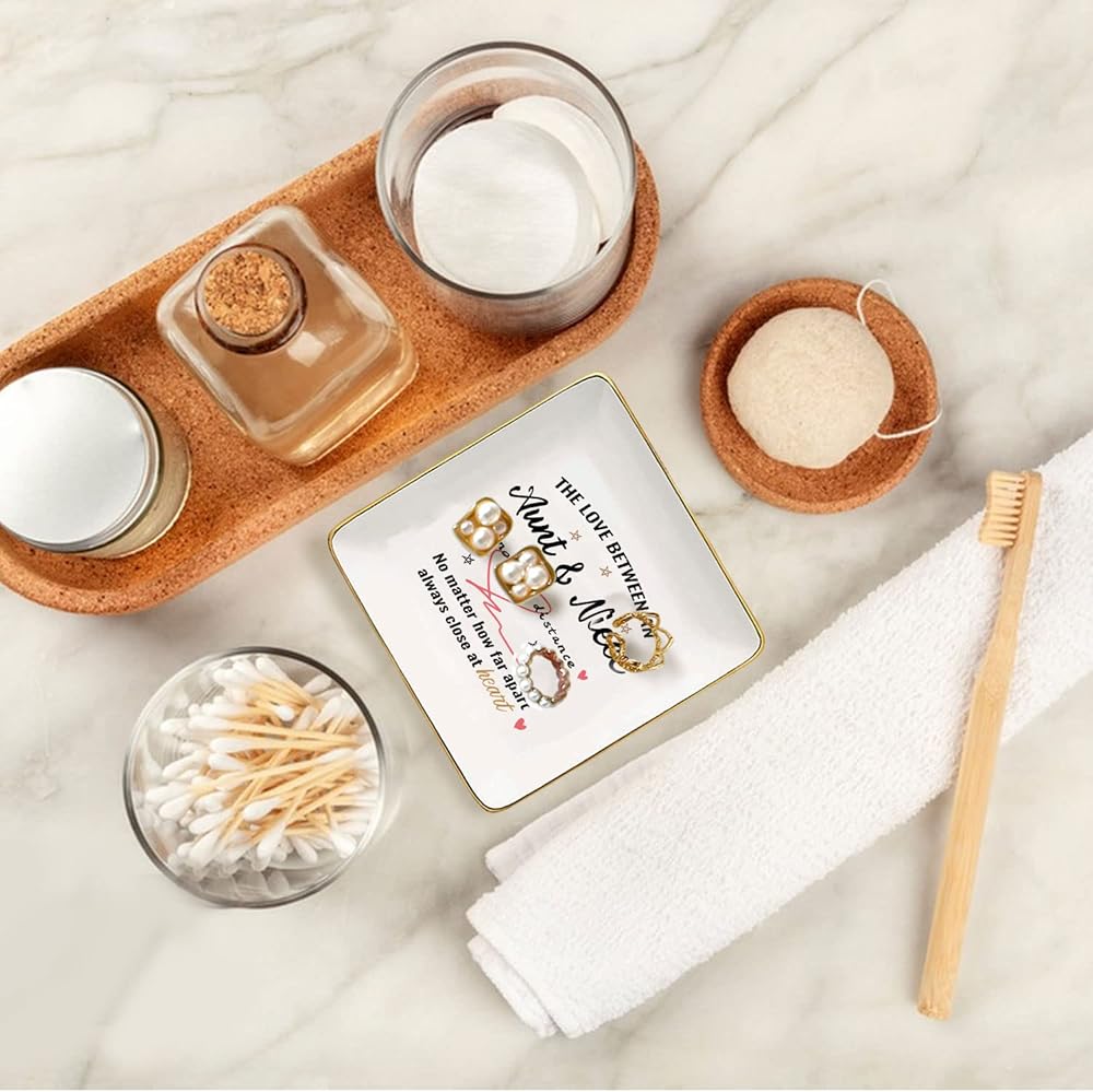 • هدايا - صينية أطباق مجوهرات العمة وابنة الأخ تدوم طويلاً، لطيفة مما يضيف شعورًا بالدفء والألفة! كهدايا مضحكة للنساء، أفكار للهدايا، ديكور للسكن للبنات الجامعيات، هدايا مطبخ للنساء، هدايا عيد ميلاد للنساء، ديكور الحمام الفضي.