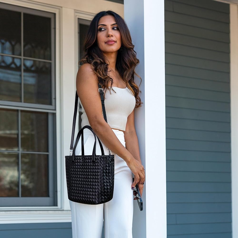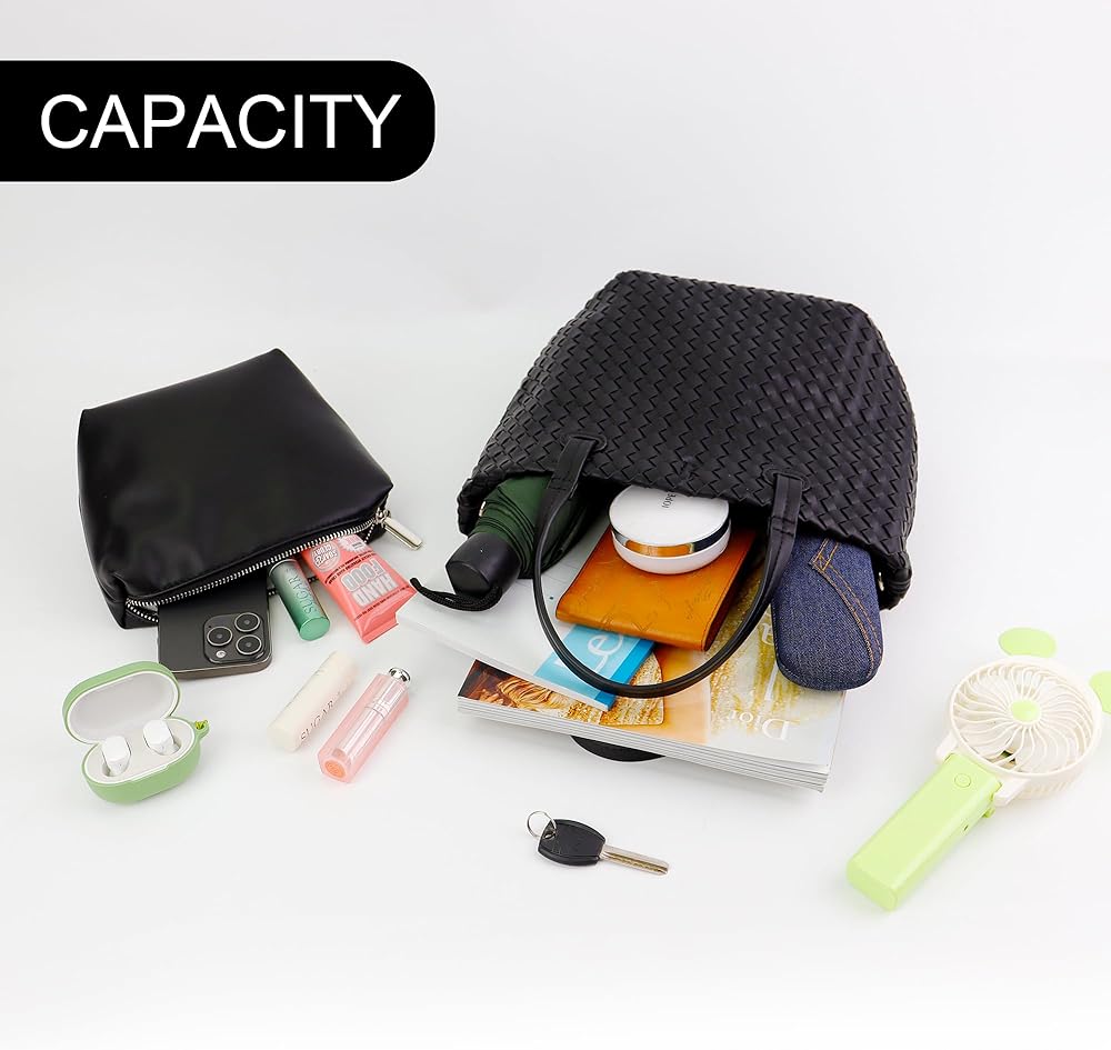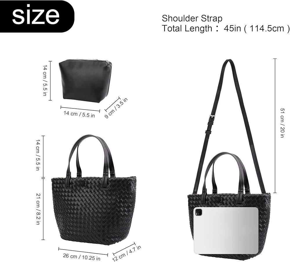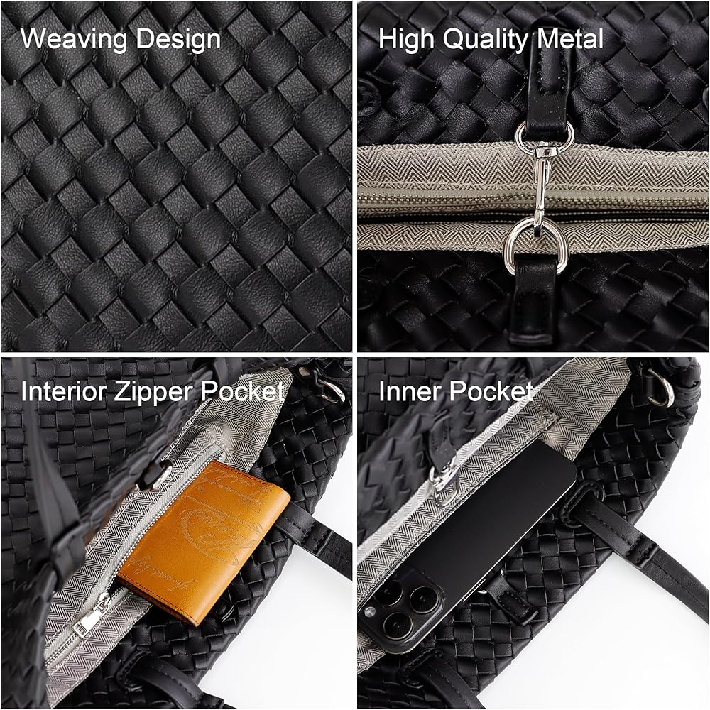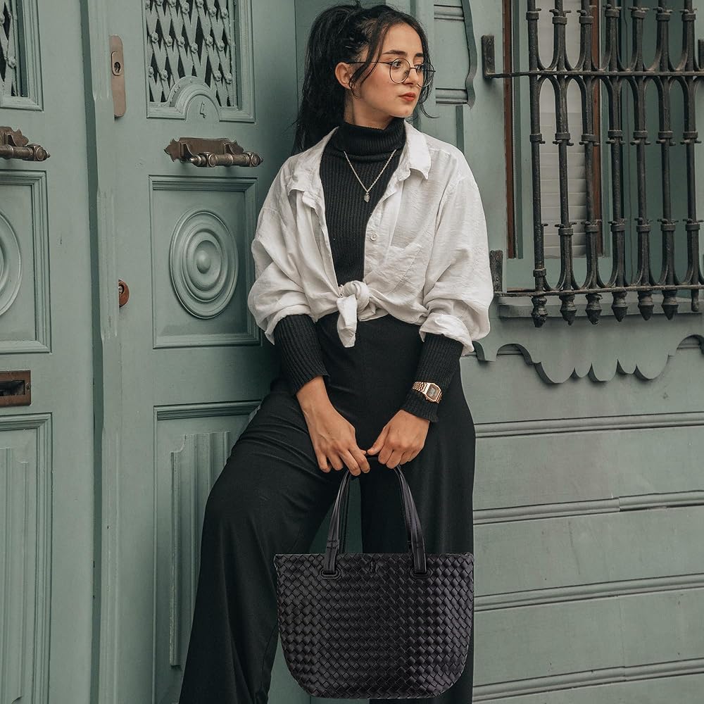 【مادة ناعمة】حقيبة اليد النسائية المنسوجة هذه مصنوعة من جلد البولي يوريثان الناعم، وملمس بسيط وواضح وطبيعي، ونمط عصري منسوج وبطانة من القماش الناعم.