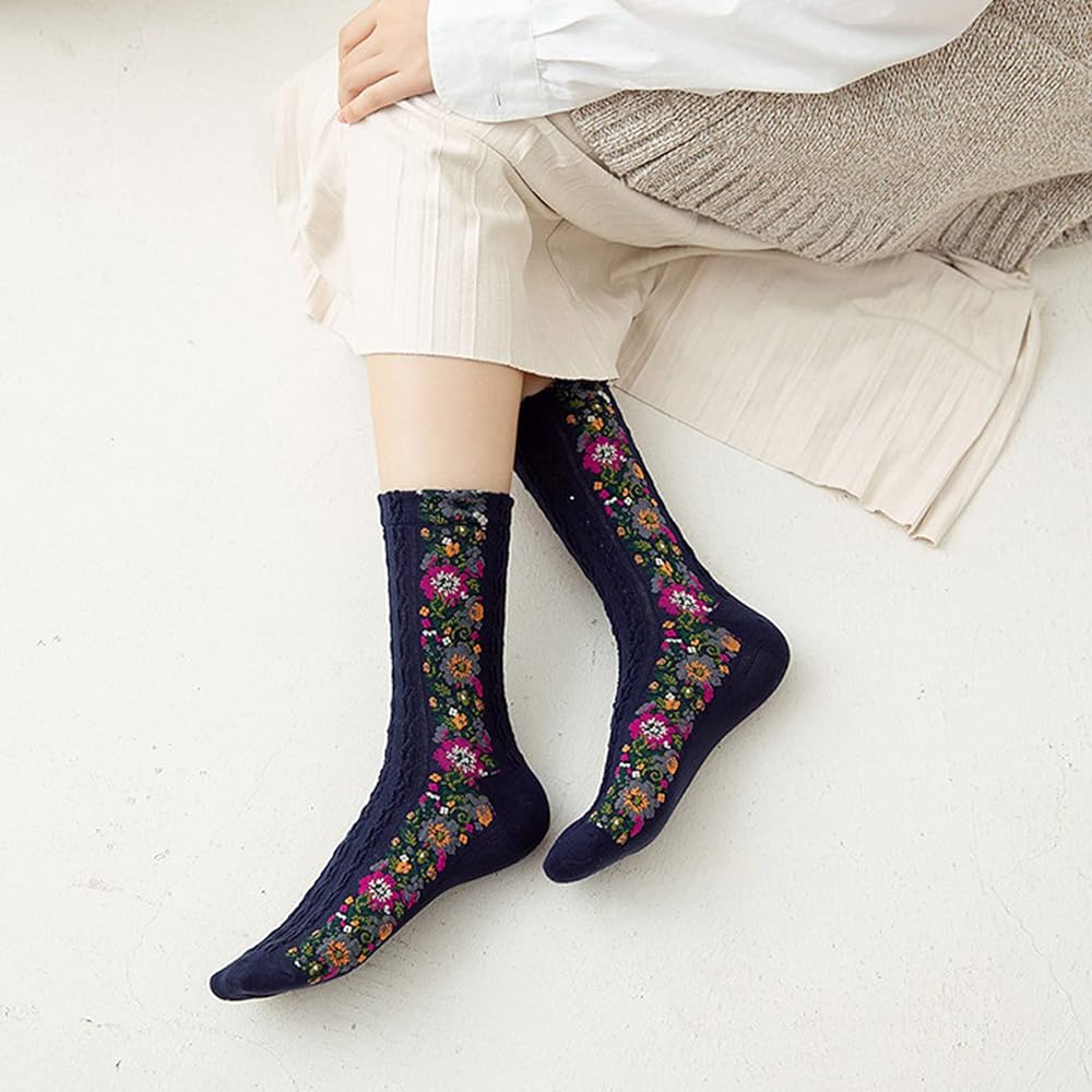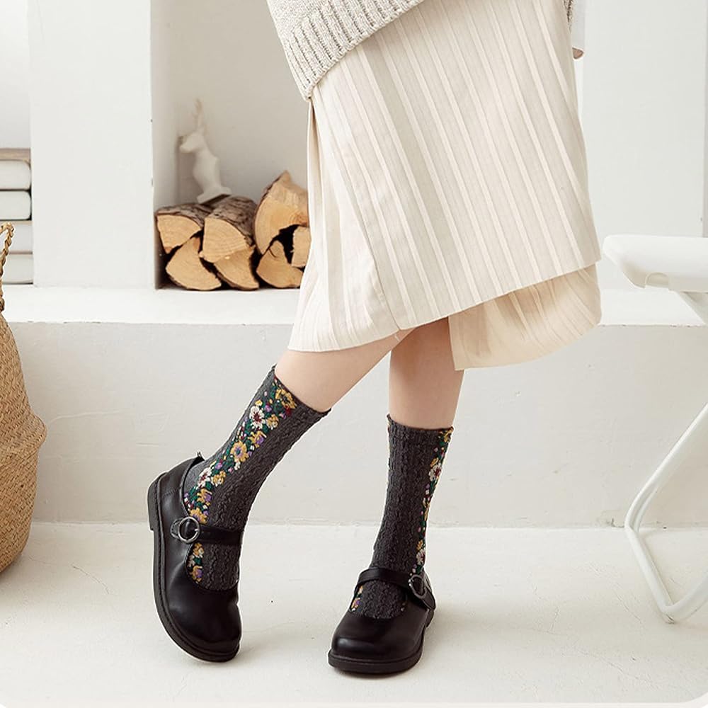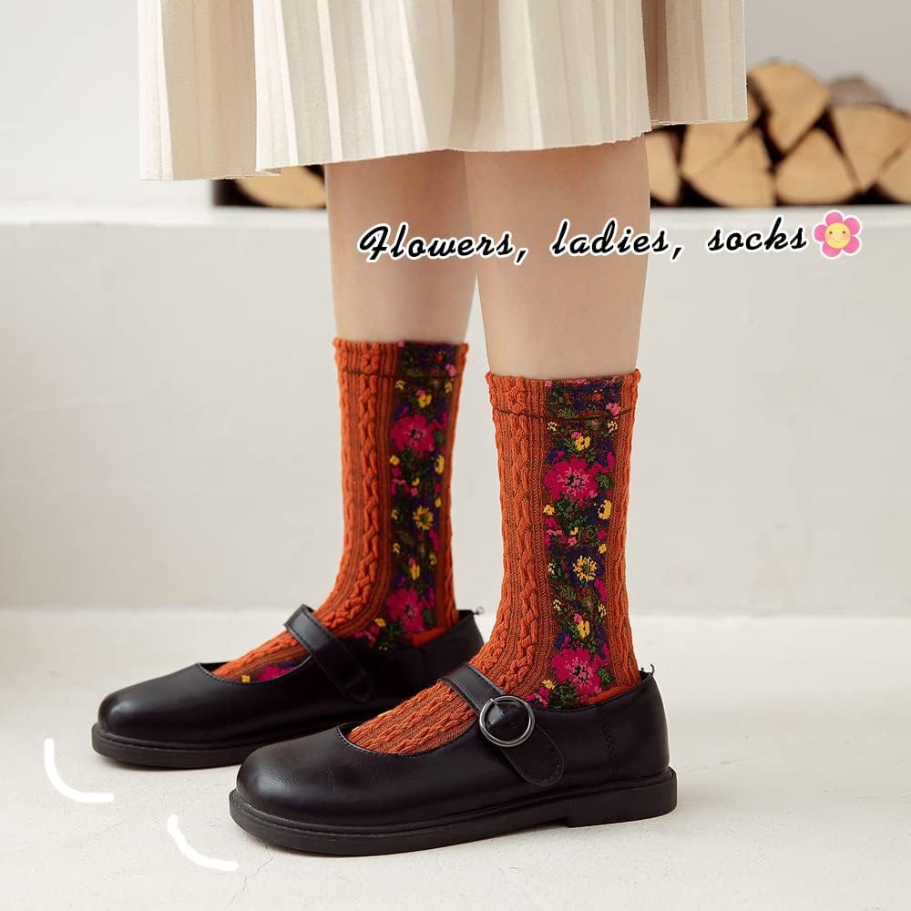 • ❀FLORAL KNIT PATTERN SOCKS: The Novelty Floral pattern socks are exclusive to feminine beauty, Stylish and elegant. Vintage Ethnic Style Socks are fashionable and attractive, brighten up you the normal daily life.