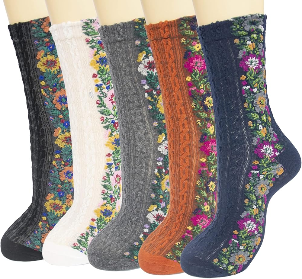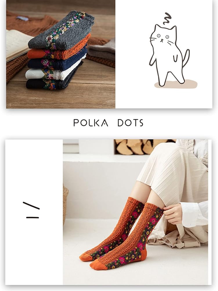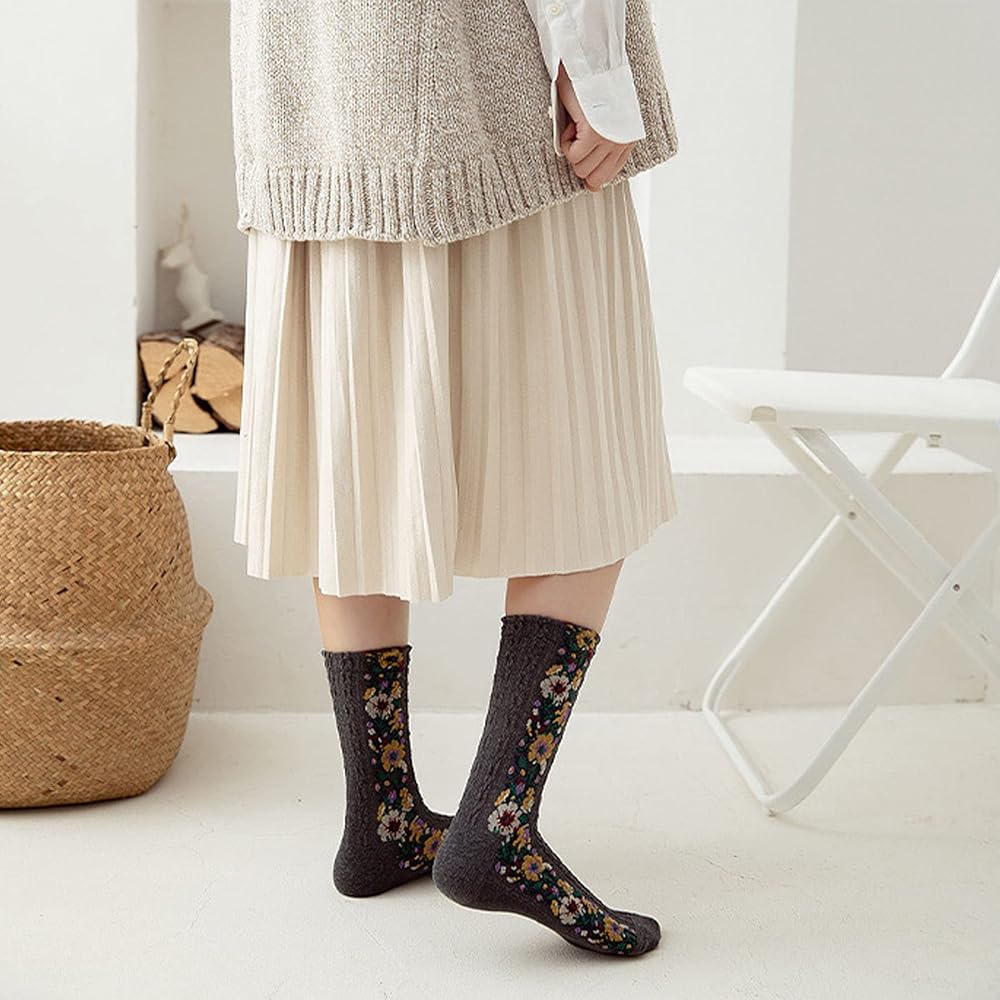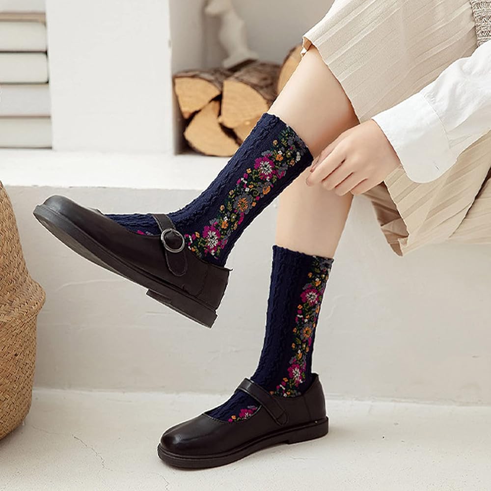 • ❀FLORAL KNIT PATTERN SOCKS: The Novelty Floral pattern socks are exclusive to feminine beauty, Stylish and elegant. Vintage Ethnic Style Socks are fashionable and attractive, brighten up you the normal daily life.