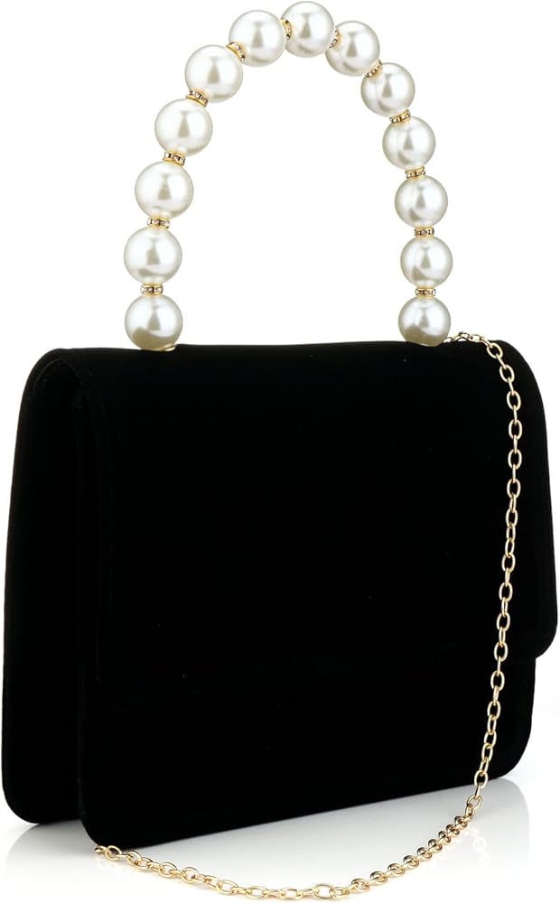 ❤❤تصميم كلاسيكي: حقائب يد مخملية كلاسيكية باللونين الأسود والخمري بمقابض مصنوعة من اللؤلؤ. تصميم بسيط، أنيق جدًا، قديم ونبيل، يسهل جدًا تنسيقه مع الملابس.