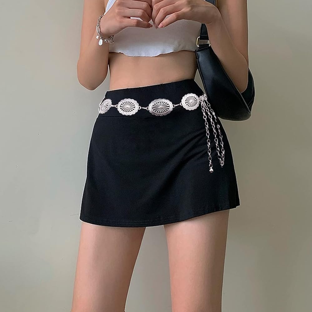 سلسلة حزام سلسلة غربية، سلسلة معدنية عتيقة مجوفة للخصر لفساتين الجينز ومجوهرات الجسم للنساء (الحزام الغربي-01)