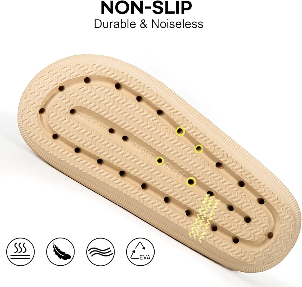 مريح للغاية: هذه الشباشب المنزلقة للجنسين مصنوعة من مادة EVA المريحة للغاية. نعل داخلي سميك وناعم مع خاصية مقاومة للماء، الانزلاق على هذا الصندل يشبه المشي على السحاب