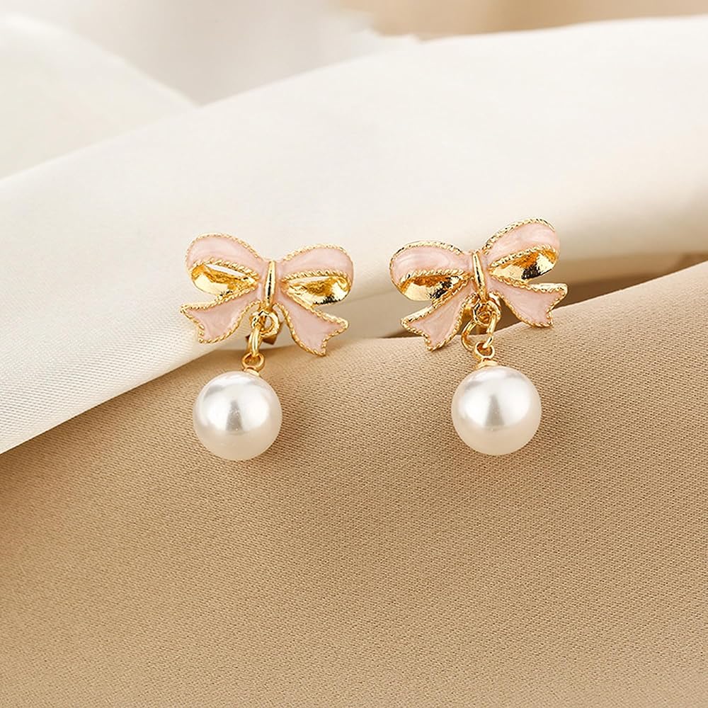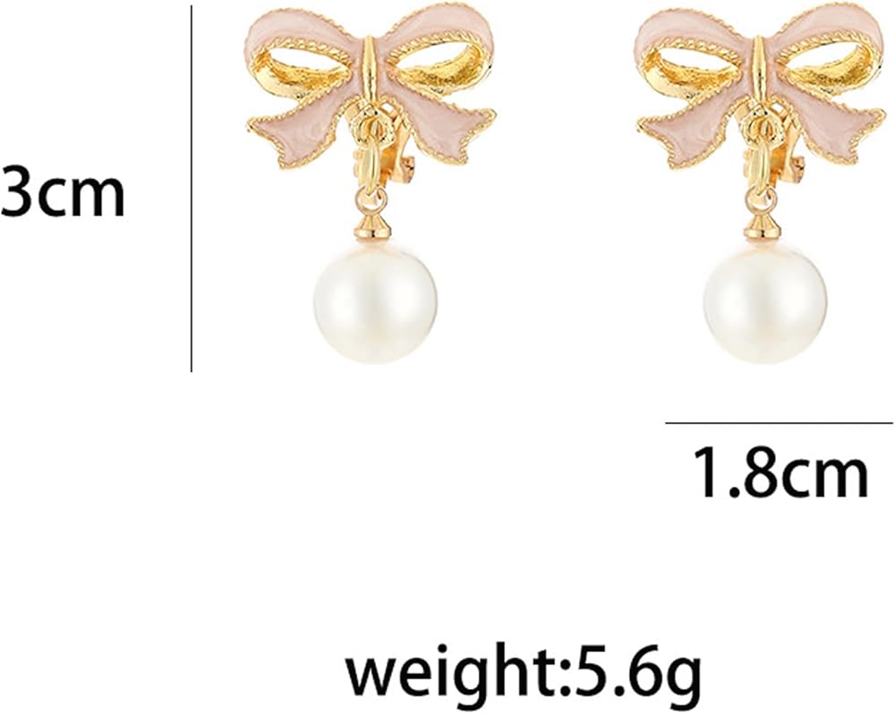 فو تقليد اللؤلؤ الوردي Bowknot استرخى قطرة القرط عشيق