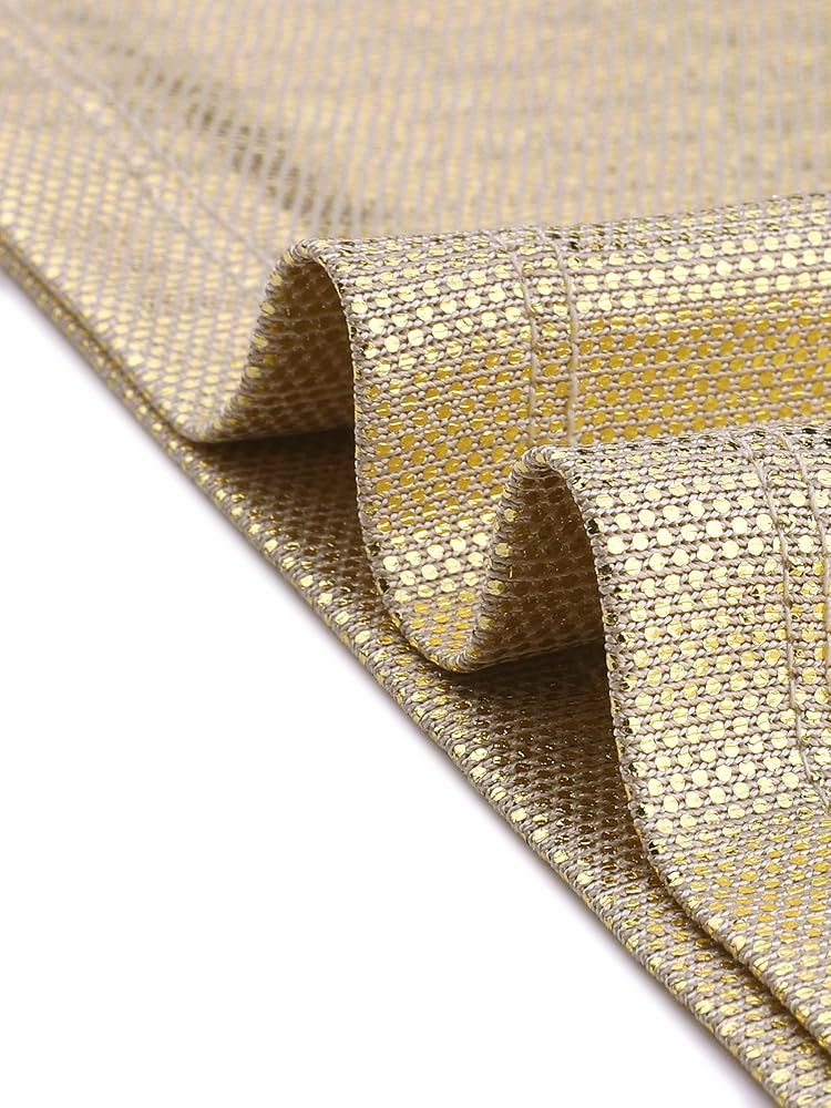 • قمصان علوية لامعة معدنية، أكمام منتفخة، رقبة دائرية، قماش قابل للتمدد، زر علوي في الخلف.