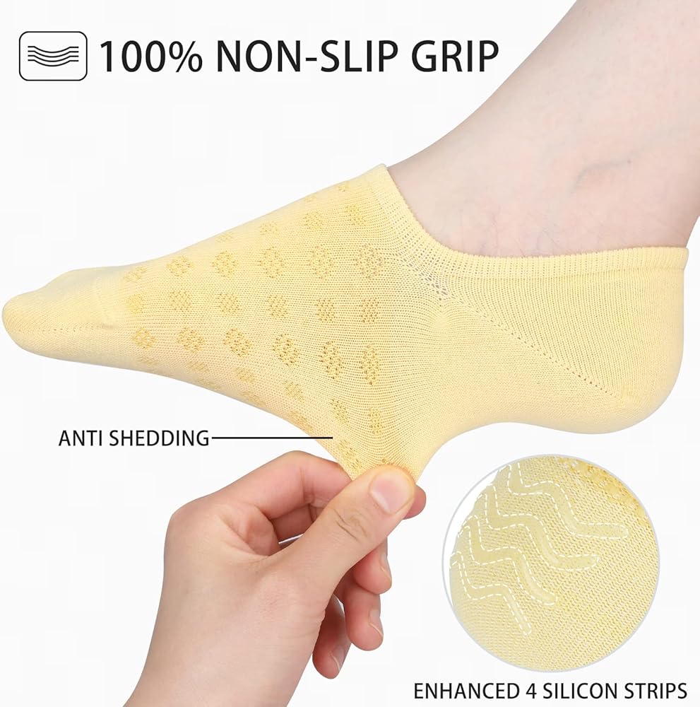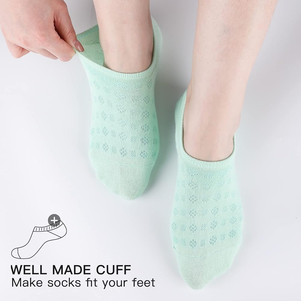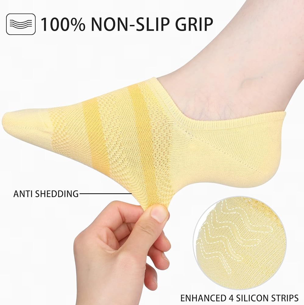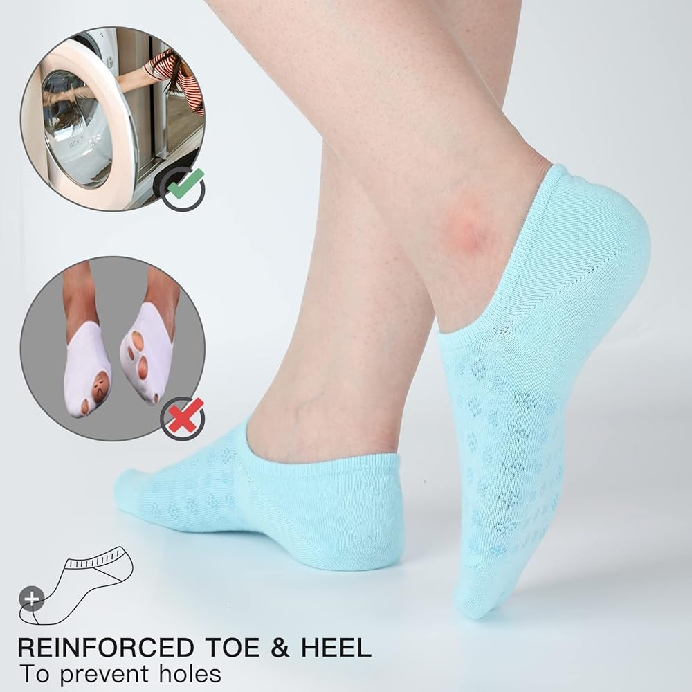 [جوارب نسائية غير قابلة للانزلاق]: جوارب نسائية قطنية منخفضة القطع غير مرئية مع 4 مقابض كعب سيليكون مضادة للانزلاق لضمان عدم ظهور جوارب للنساء تبقى في مكانها طوال اليوم. هذه الجوارب النسائية التي لا يمكن رؤيتها تناسب مقاس حذاء النساء الأمريكي 6-10، الجوارب النسائية الأمريكية التي لا تظهر مقاس 9-11. جوارب No Show النسائية غير القابلة للانزلاق هي هدية رائعة.