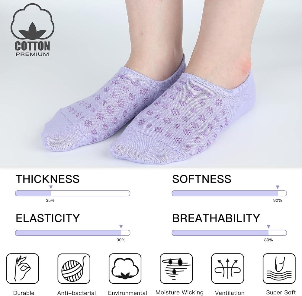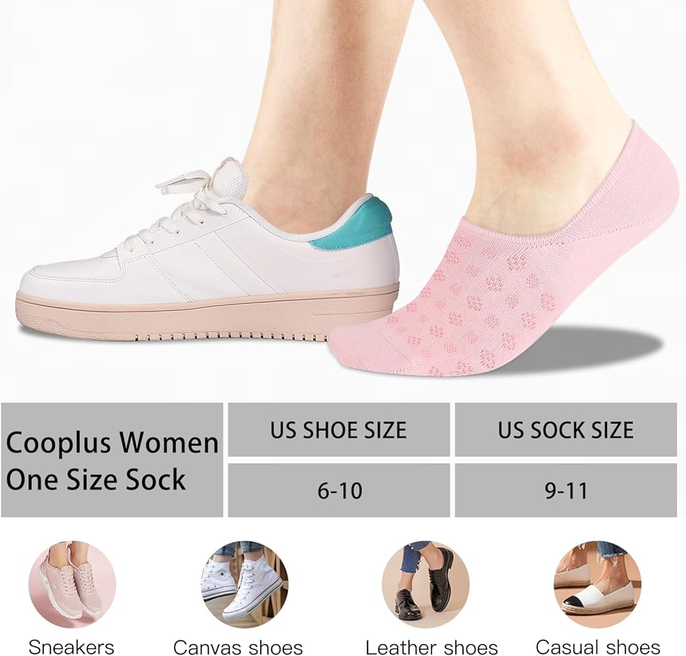 [جوارب قطنية فاخرة بدون عرض للسيدات]: مصنوعة من القطن عالي الجودة، جوارب COOPLUS النسائية التي لا تظهر أكثر ملاءمة للبشرة، ومسامية ومتينة. تستخدم هذه الجوارب النسائية ذات القطع المنخفضة 168 إبرة حياكة عالية الكثافة لجعل الجوارب النسائية أكثر راحة وقابلة للتمدد، ومناسبة للارتداء اليومي.