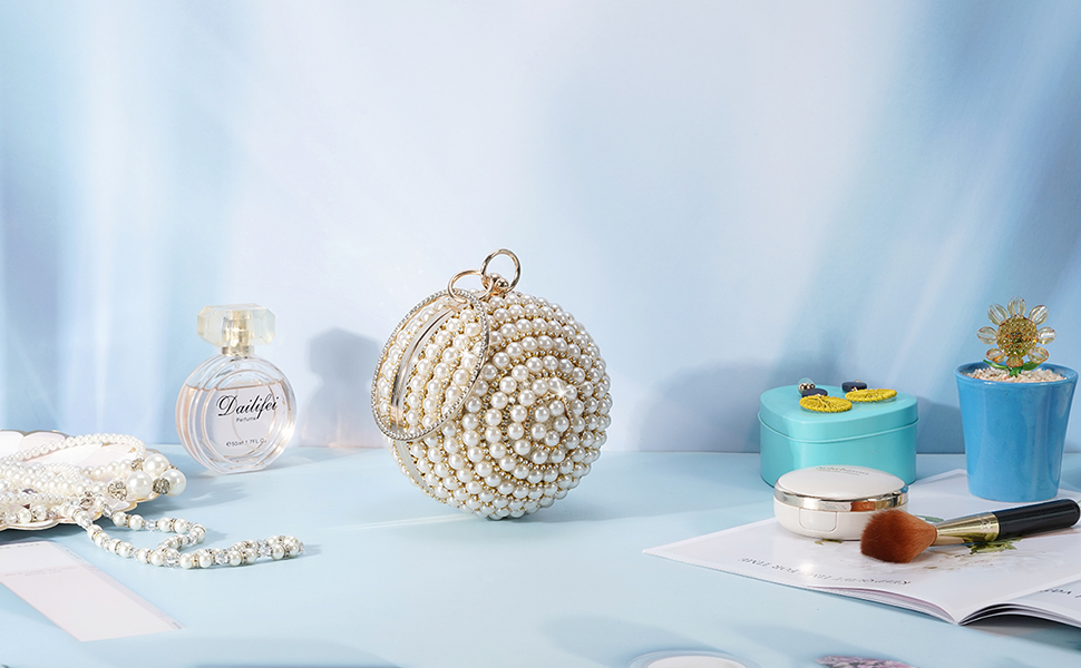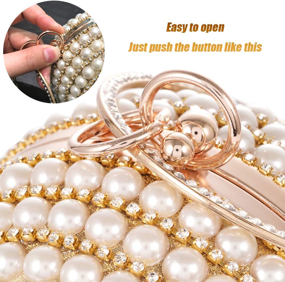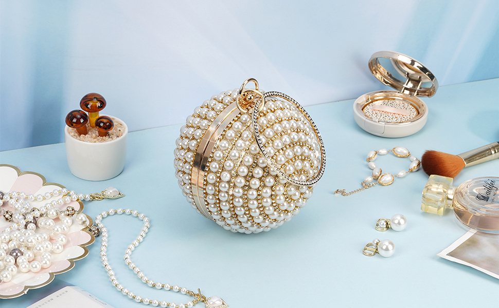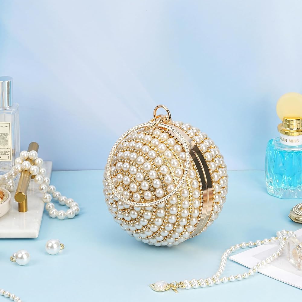 LONGBLE is a shop dedicated to various kinds of woman clutch evening bags. Our unique fashionable round ball is easy to handle with a big circle ring. Stunning as a evening party bag, it will be eye-catching. Features: Material: Strong metal frame, synthetic fabric surface, artificial pearls and rhinestone decor.Size: Φ13.5cm /5.3”.Color: Gold with ivory pearls decor.Size of Chain: about 120cm unfolded, about 50cm using length. Note: 1. With the difference in measurement method, please allow 0.1-1 inches in size and weight deviation.2. Due to differences between monitor displays, actual color may vary slightly from image.