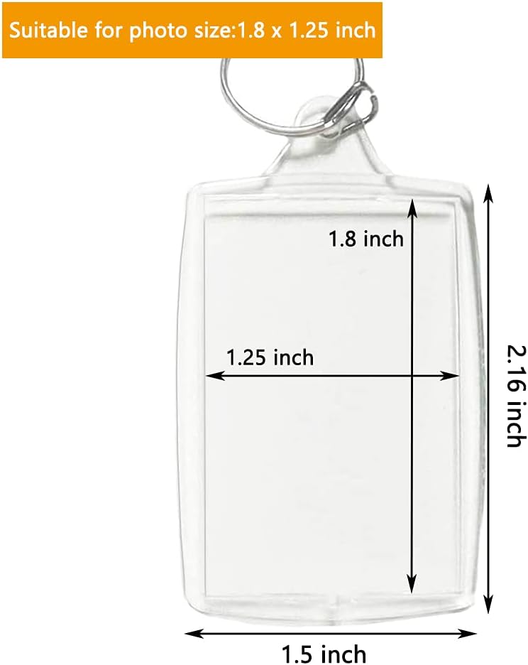 - سلاسل مفاتيح إدخال الصور مصنوعة من مادة الأكريليك الشفافة وملفوفة بشكل فردي لمنع الخدوش، ويمكنها عرض الصور بشكل جيد.