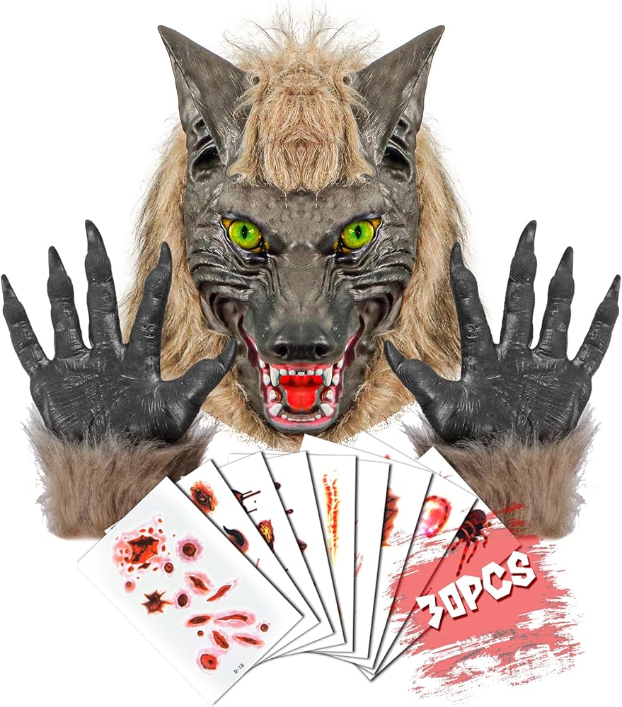 【ما تحصل عليه من EPN】قناع مستذئب واحد، وقفازين للمخالب، و30 ورقة من ملصقات الوشم المؤقتة للندبات. يرجى ملاحظة: زي الذئب مصنوع من اللاتكس، لذلك سيكون للقناع رائحة قليلة. يرجى وضع القناع في مكان جيد التهوية لفترة من الوقت قبل الاستخدام. مرحبًا بكم مرة أخرى في متجر أمازون: شركة American Epsilon Inc.