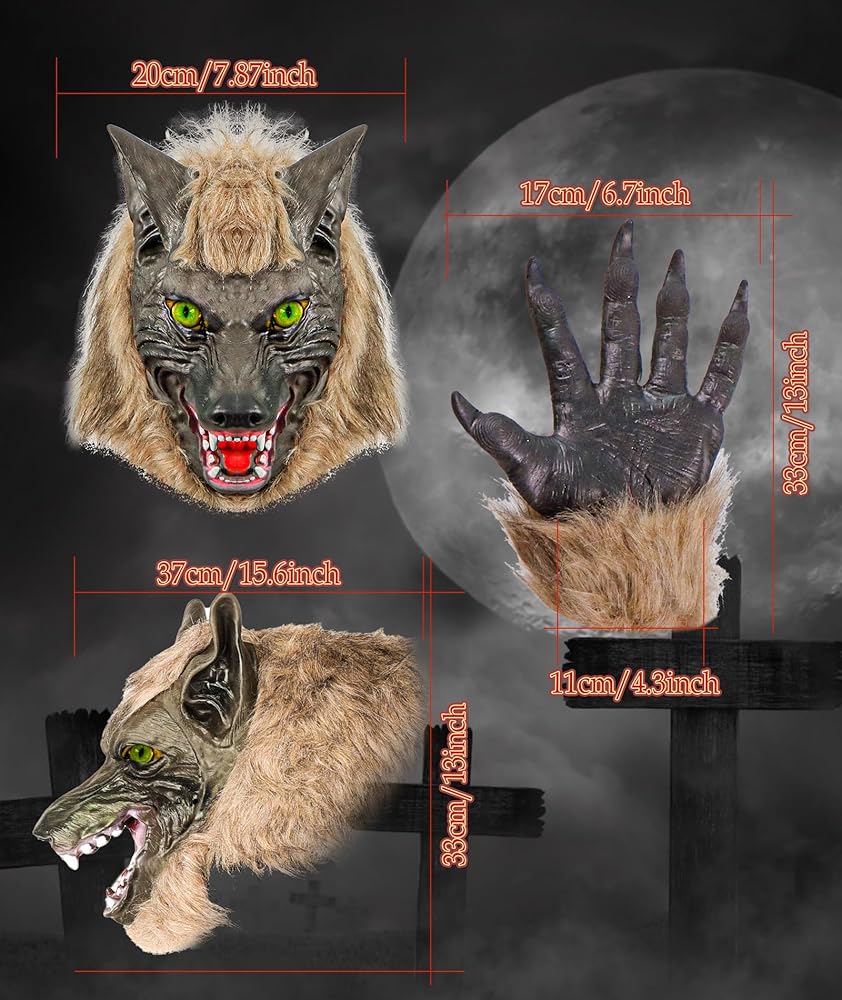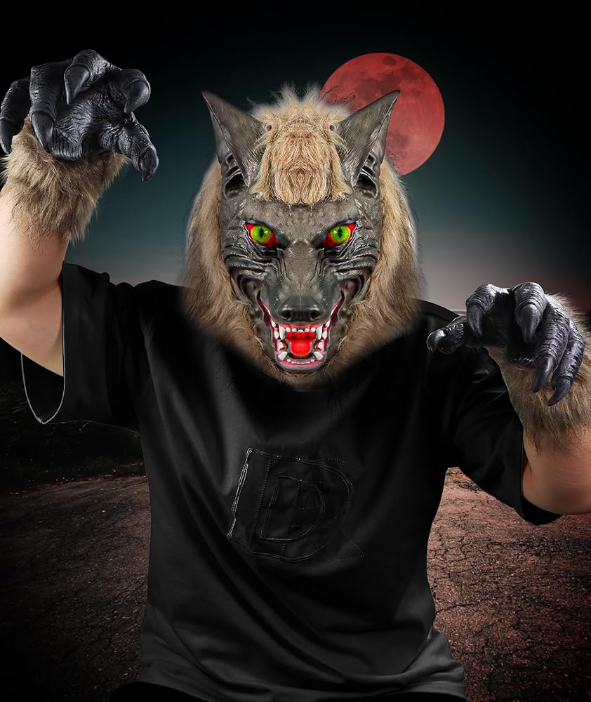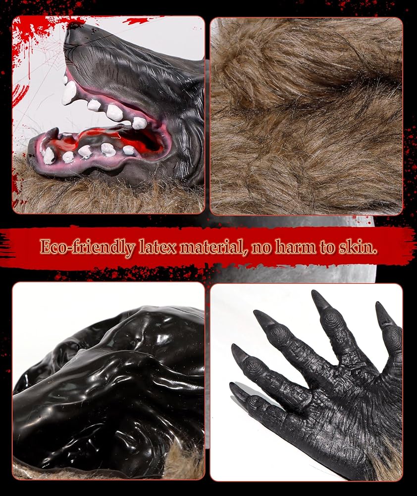 【زي الهالوين الفريد】ارتدي قناع المستذئب وقفازات المخالب لتجعلك أكثر جاذبية في حفلة الحدث. مثالي للهالوين، والحفلات التنكرية، والهدايا، والحفلات التنكرية، والكرنفال، وما إلى ذلك.