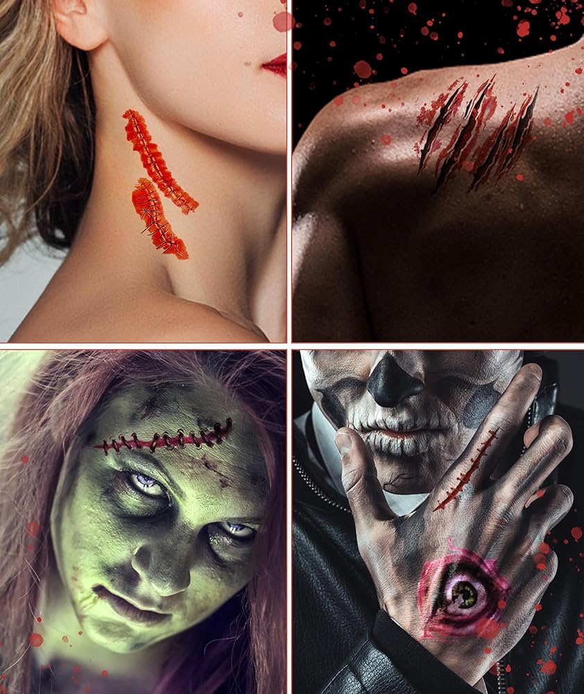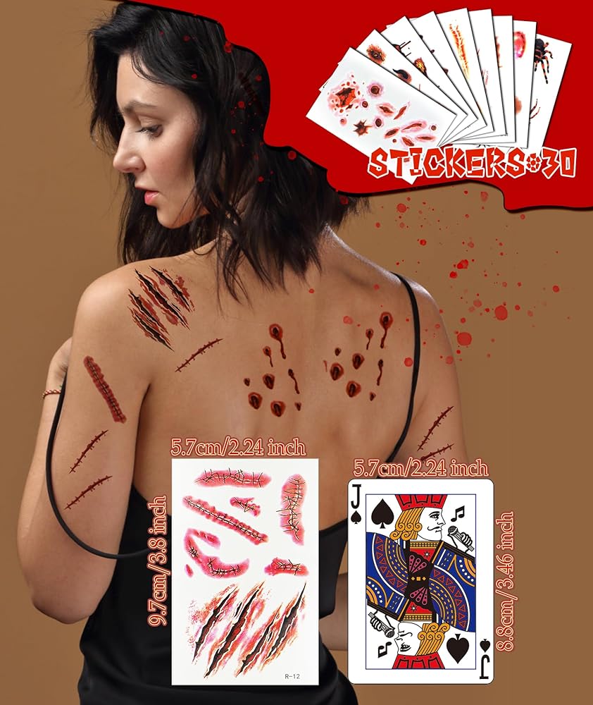 【ملصقات وشم ندبة واقعية】تحتوي ملصقات وشم الهالوين ثلاثية الأبعاد على 30 ورقة بأكثر من 120 تصميمًا متنوعًا، واقعية وطبيعية للغاية، العب بقناع الذئب معًا، مما يمنح المستخدمين تجربة عيد الهالوين التي لا تنسى.