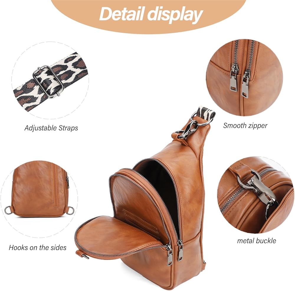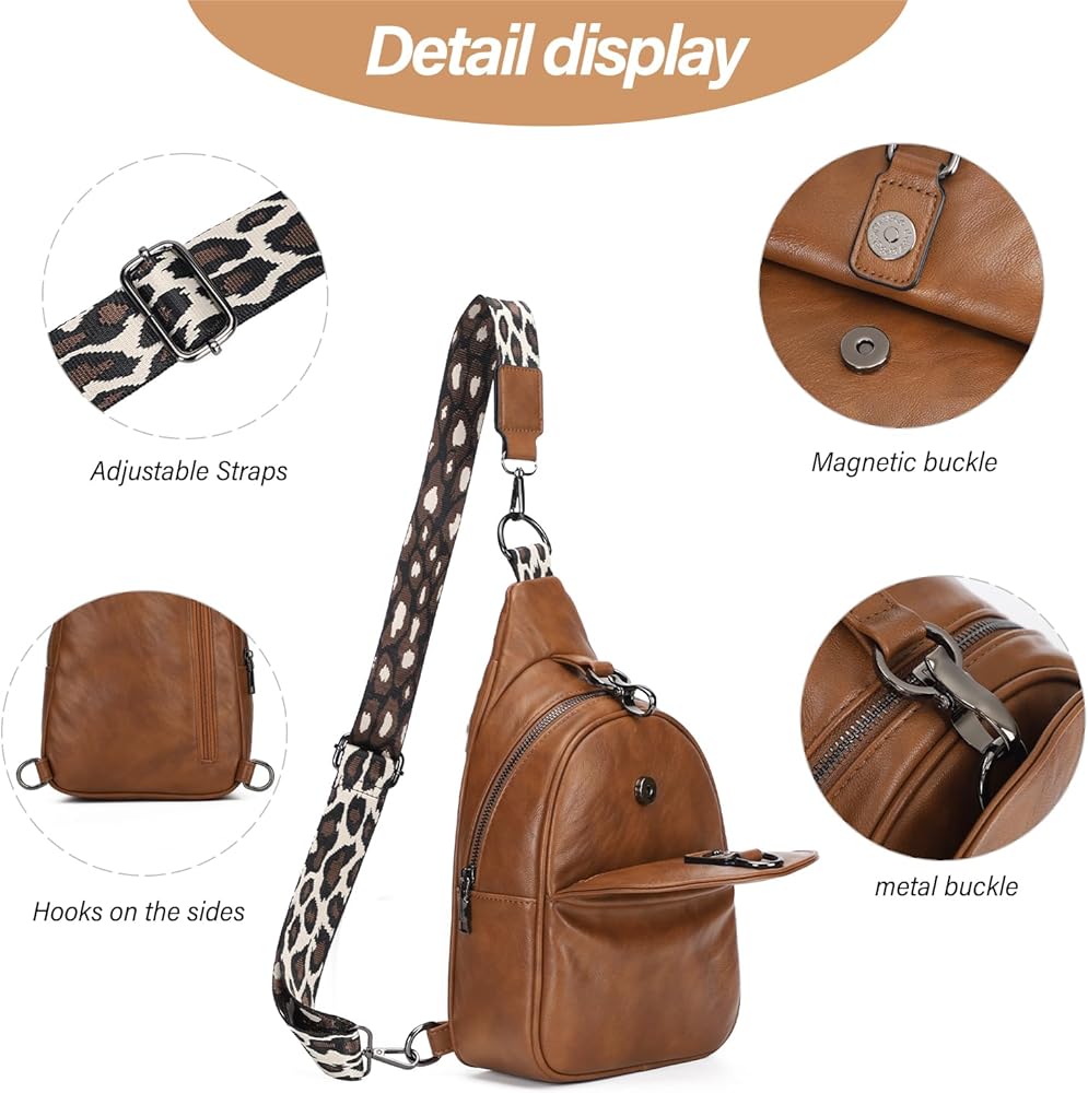 خامة عالية الجودة: حقيبة الصدر النسائية الخاصة بنا مصنوعة من جلد البولي يوريثان عالي الجودة مضاد للخدش والبهتان ومقاوم للماء. أنيقة في الملمس وناعمة الملمس، تحافظ على شكل حقيبة الحمالة جيدًا.