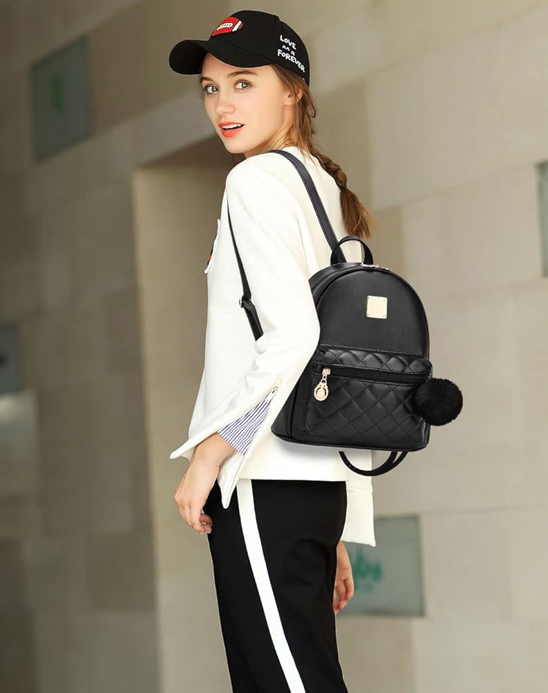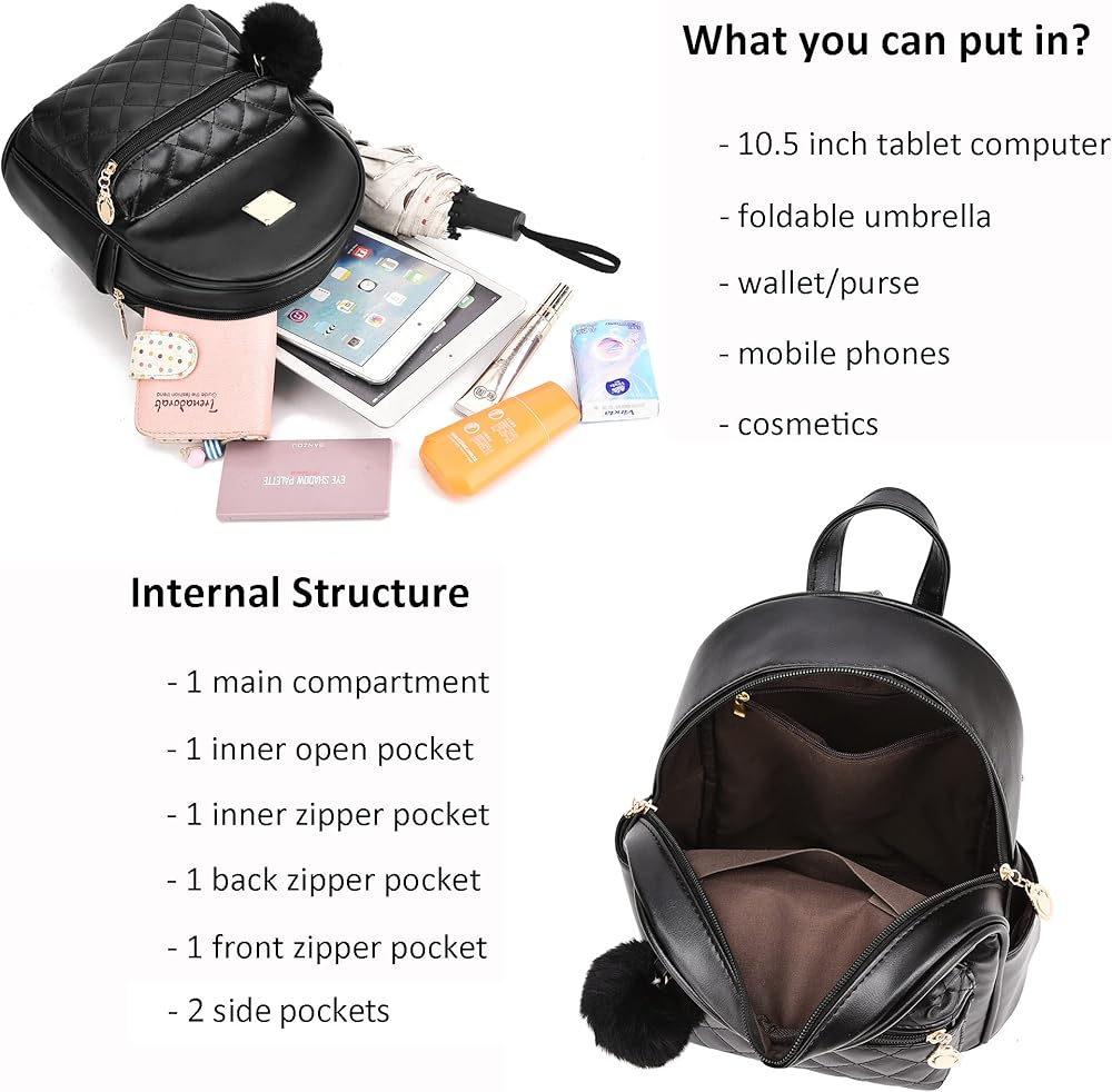 التصميم: شكل لطيف بنمط مبطن أنيق وزخرفة بوم بوم، تجعل حقيبة الظهر الصغيرة كاجوال وأنيقة، إكسسوار مثالي لسفر الفتيات أو الاستخدام اليومي