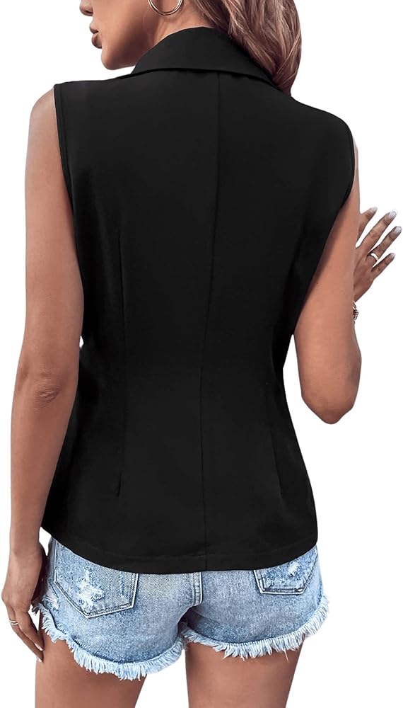 - السمات: ياقة على شكل طية صدر، بدون أكمام، عقدة جانبية، زر أمامي، سترة غير متماثلة