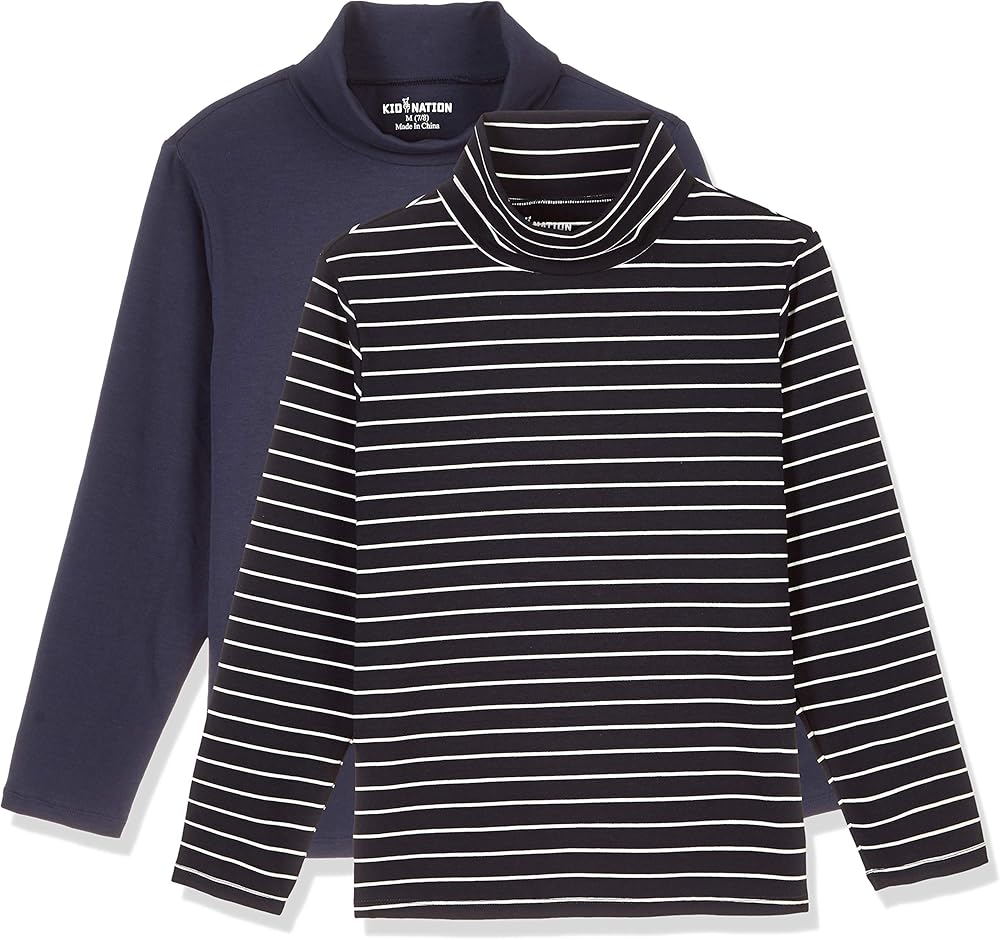 تي شيرت Kid Nation Girls بياقة مدورة من القطن برقبة سلحفاة مع تي شيرت إيلاستين بأكمام طويلة للفتيات (عبوتان) 3-12 سنة