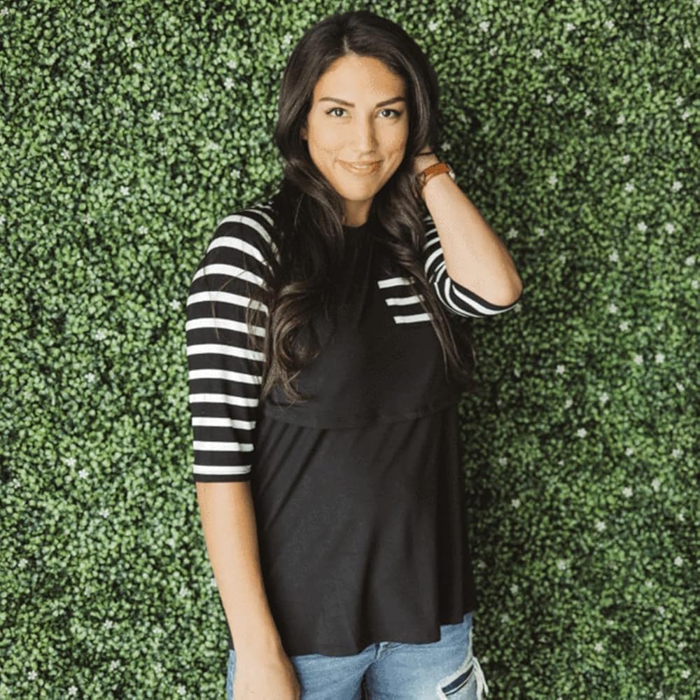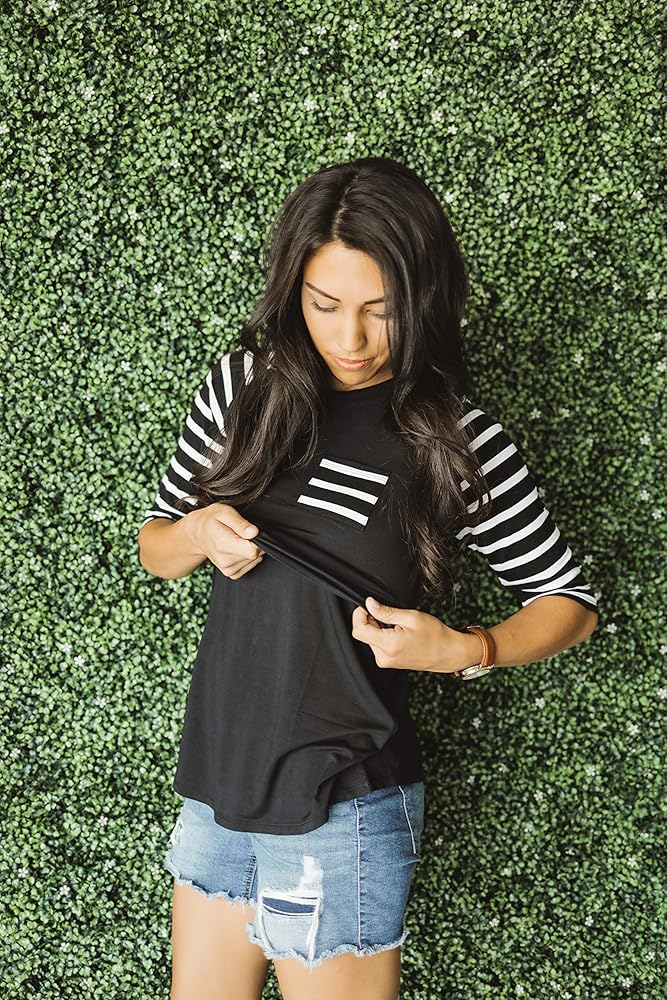 يعمل قميص البيسبول للرضاعة هذا مع أي حمالة صدر لسهولة الوصول إلى الرضاعة بيد واحدة.