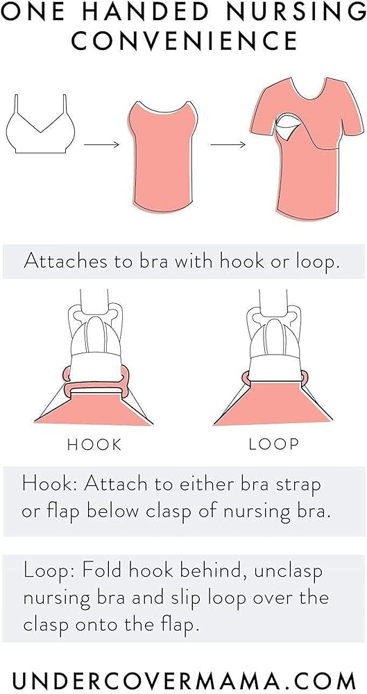 يأتي كل قميص رضاعة مزودًا بخيارين مدمجين لربطه بحمالة الصدر. بالنسبة لحمالة الرضاعة الخاصة بك، ما عليك سوى وضع الحلقة على لسان حمالة الرضاعة، وتبقى متصلة طوال اليوم. أو قم بتمرير الخطاف في أي مكان على اللسان أو الحزام أو جانب أي حمالة صدر.
