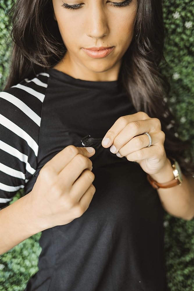 سهولة الرضاعة - إمكانية الوصول إلى الرضاعة بيد واحدة وغطاء مدمج مما يجعل هذا القميص أفضل قميص للرضاعة! قماش ناعم للغاية وغير شفاف، ومن المؤكد أنك ستحصلين على تجربة رائعة للرضاعة الطبيعية.