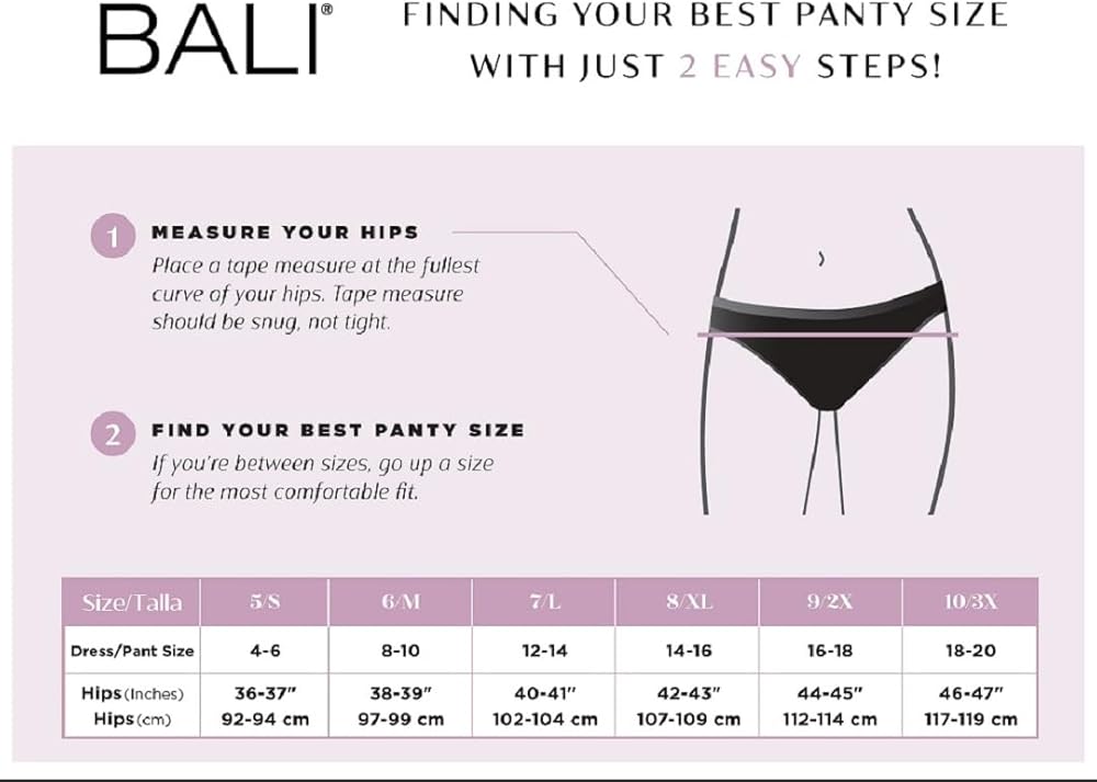 نسيج عالي الجودة - لباس داخلي نسائي قصير من Bali يجمع بين نسيج القطن خفيف الوزن مع الملاءمة الناعمة وحرية حركة الألياف اللدنة. (90% قطن/10% سباندكس.)
