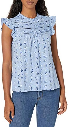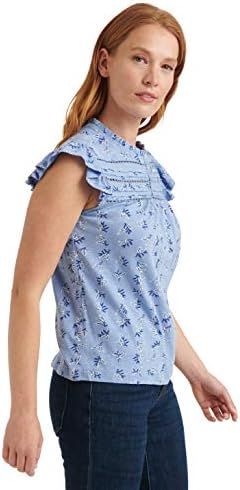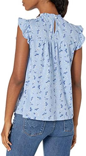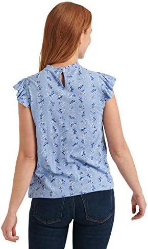 قميص نسائي مطبوع برقبة عالية وأكمام رفرفة من Lucky Brand، أزرق متعدد، M