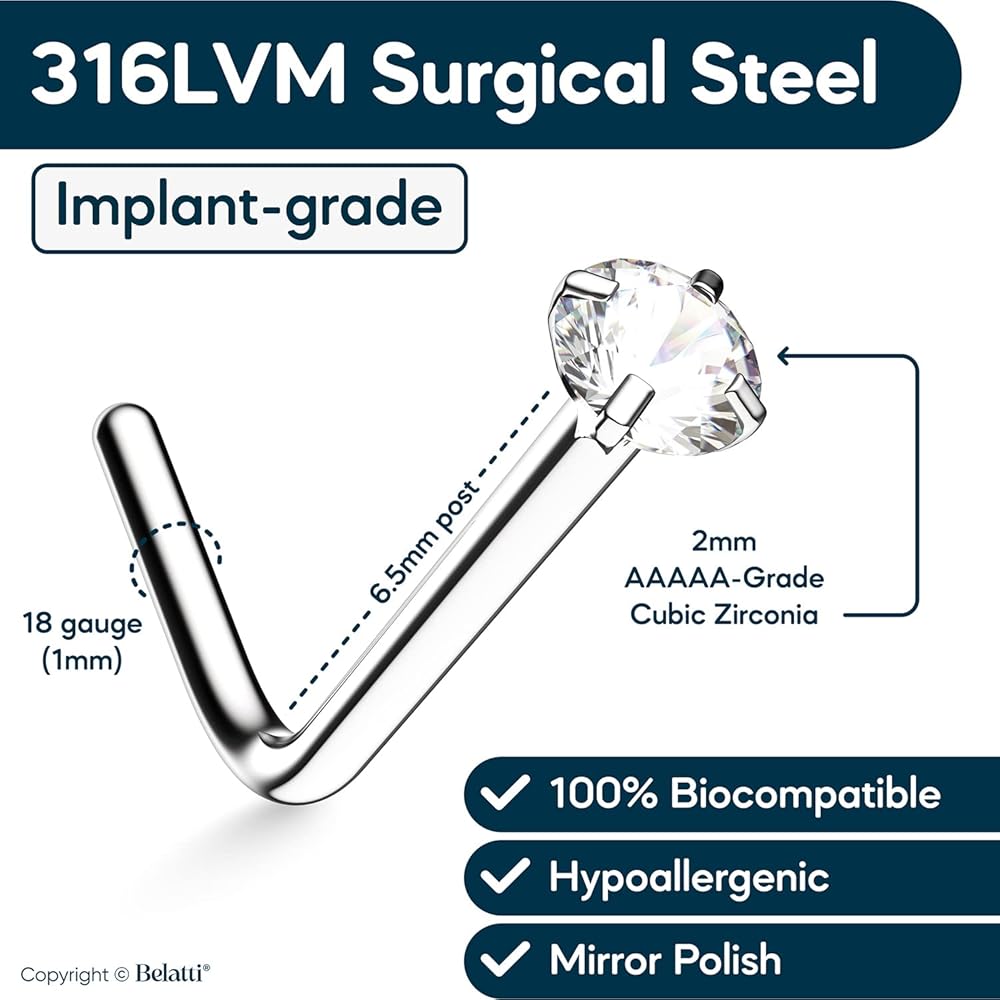 جيد لثقوب الأنف الأولية ولأولئك الذين يحبون تغيير مجوهراتهم في كثير من الأحيان لأنه من السهل الدخول إليها مع البقاء في مكانها بشكل آمن عند تركيبها. ما عليك سوى إدخال حلقة الأنف الشفافة من خلال ثقبك ولفها في موضعها. مريحة للارتداء طوال اليوم.