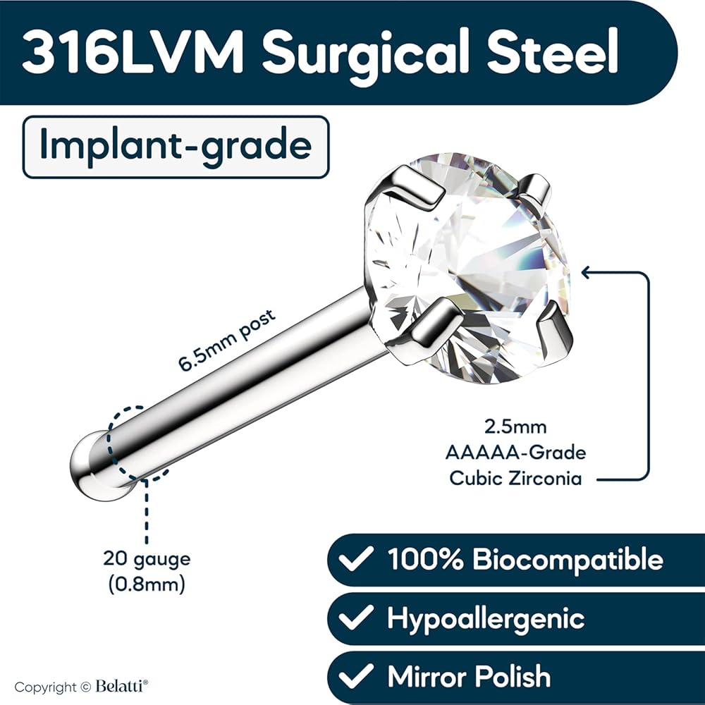 قم بتثبيت كريستالات CZ مقاس 2 مم بشكل آمن لمجموعة متنوعة من أنماط ثقب مسمار الأنف. يؤدي العمود الشفاف لأزرار الأنف اللطيفة هذه إلى الحصول على مظهر أكثر دقة و"مخفيًا". يتم وضع إعداد الكوب الخاص بمسمار الأنف الكريستالي هذا على الأنف ولكنه بارز بدرجة كافية لإظهار زوايا الأحجار الكريمة اللامعة!