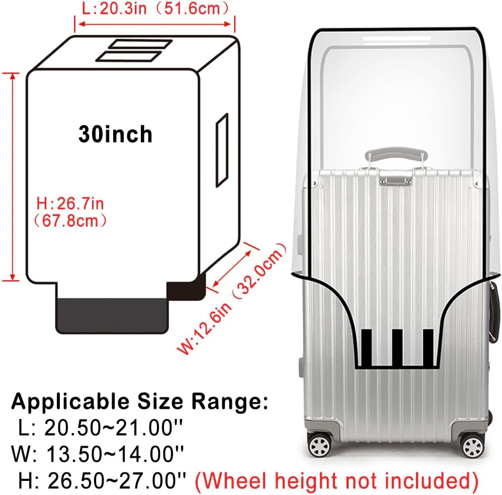 【غطاء حقيبة مقاس 30 بوصة】-- نطاق المقاسات المطبقة. الطول: 20.50 ~ 21.00 بوصة، العرض: 13.50 ~ 14.00 بوصة، الارتفاع: 26.50 ~ 27.00 بوصة (ارتفاع العجلة غير متضمن). يرجى ملاحظة أن حجم حقيبتك (مثل 30 بوصة) قد لا يتطابق مباشرة مع حجم غطاء الحقيبة (30 بوصة). لذا يرجى قياس الحجم المحدد لحقيبتك وفقًا لصورة المقاس، قبل الشراء. اختر غطاء الحقيبة مع أبعاد تعبئة الحقيبة (غير متضمنة ارتفاع العجلات) ولا تستخدم الأبعاد الإجمالية للحقيبة.