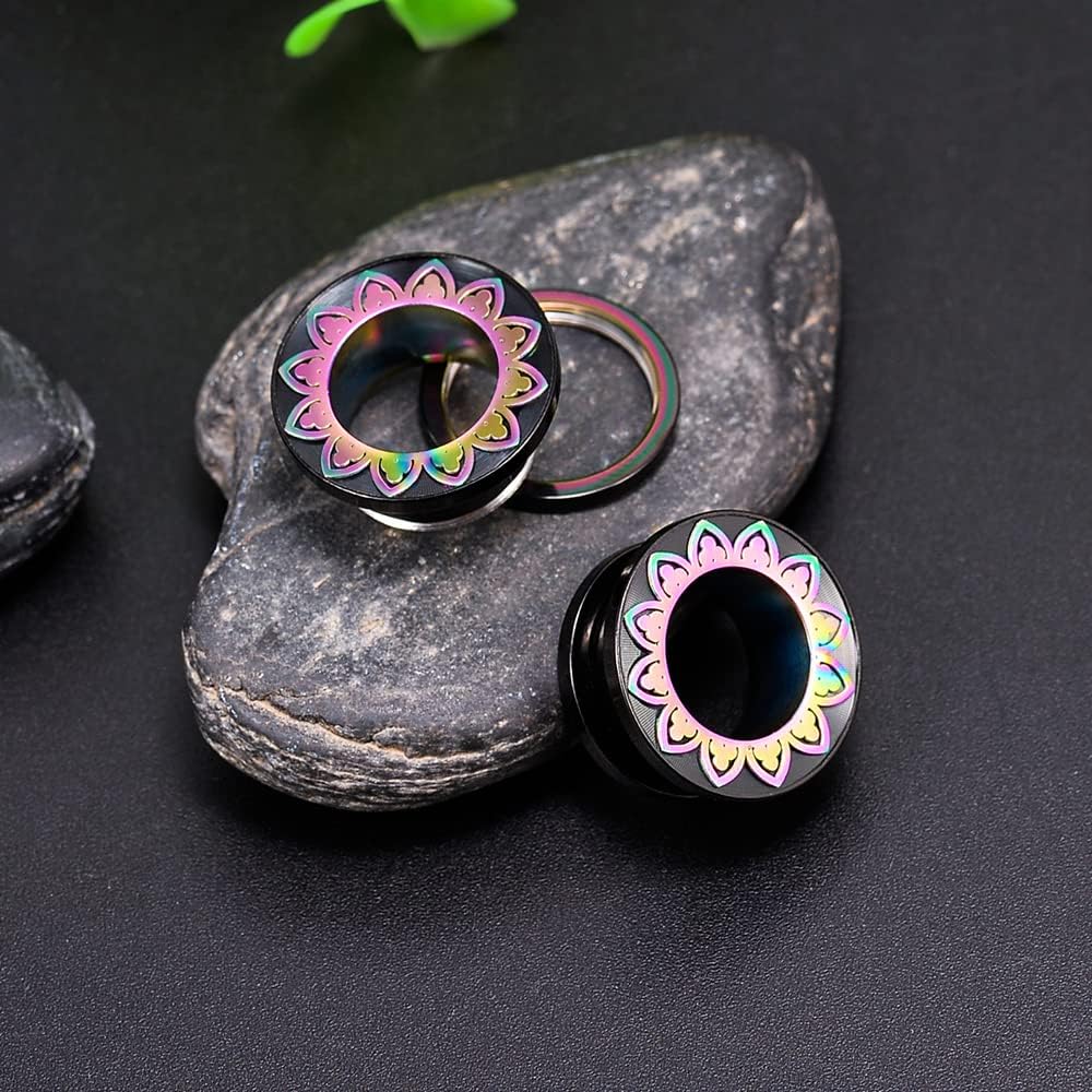 المادة: تستخدم أنفاق الأذن مادة من الفولاذ المقاوم للصدأ عالية الجودة، مريحة جدًا في الارتداء. احتفاظ بالألوان يدوم طويلاً، مواد آمنة، هو خيار صحي.