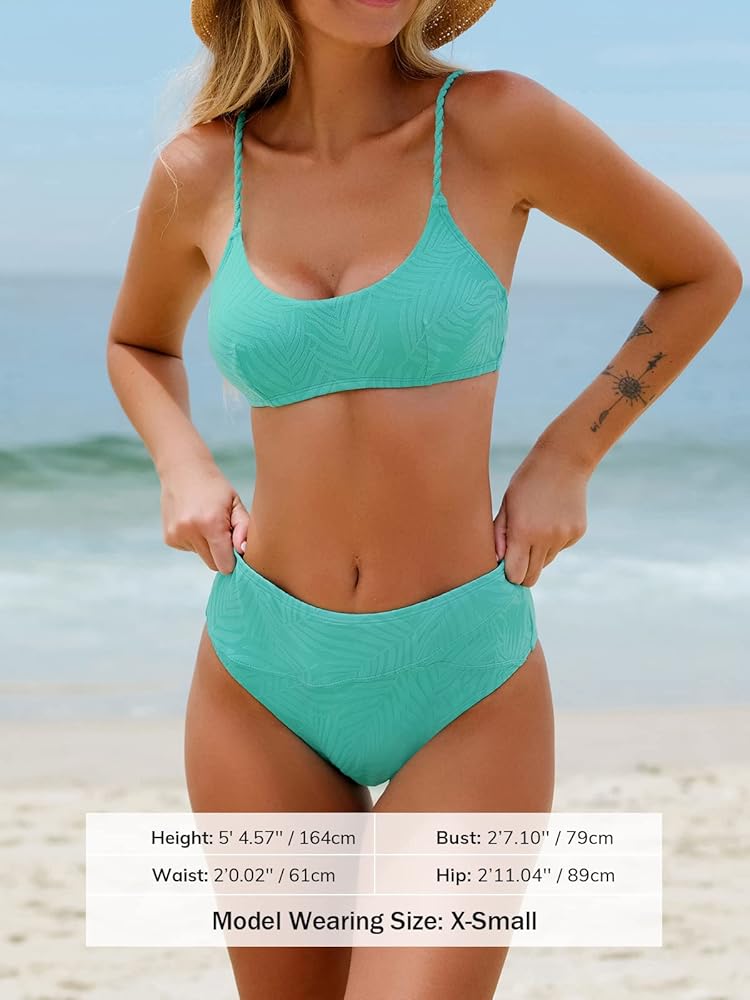التصميم: دعنا نقع في حب مجموعة البكيني هذه ذات الرقبة الواسعة والمضلعة مع أشرطة سباغيتي قابلة للتعديل. يتناسب مع الجزء السفلي غير المتماثل عالي الخصر