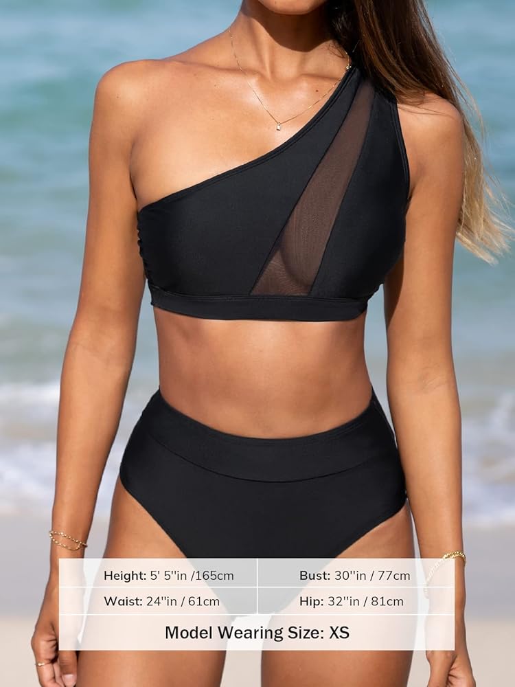 التصميم: طقم بيكيني بتصميم بكتف واحد. تفاصيل بدلات السباحة الكلاسيكية ذات الشبك والجزء العلوي غير المتماثل يمكن أن تلفت انتباه الجميع على الشاطئ. الجزء السفلي عالي الخصر يمكن أن يمنحك شعورًا بالراحة.