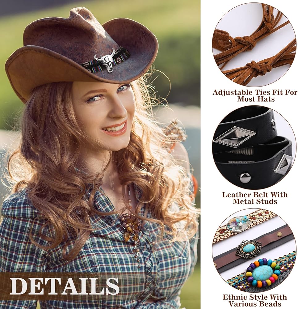 Package Including: you will receive 6 different styles of cowboy hat bands for men, such as leather bands with metal rivets, or ethnic styles with a variety of beads, abundant quality and exquisite designs are enough for you to decorate your different hats