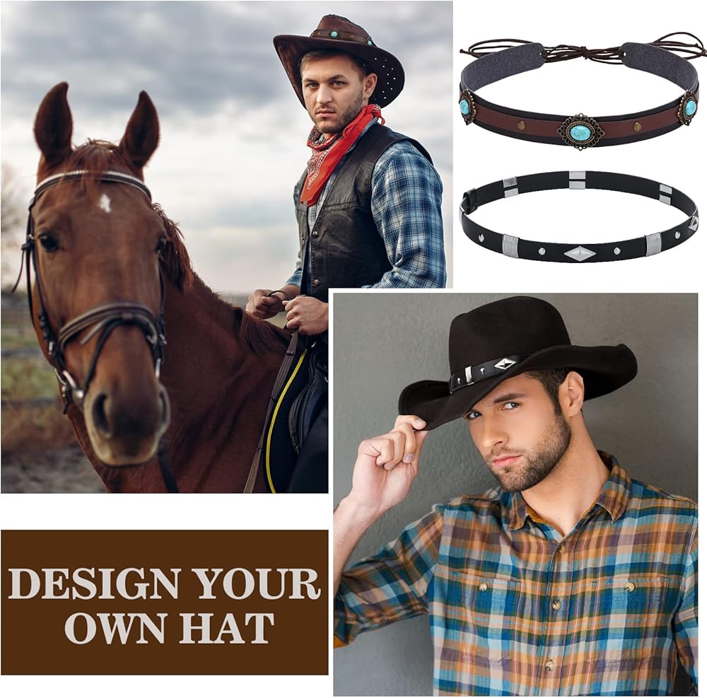 أحزمة قبعة رعاة البقر هذه للرجال مصنوعة خصيصًا لتزيين قبعتك، ويمكنك مطابقة قبعتك بأشرطة مختلفة، مما يسمح لك بإظهار أسلوبك الخاص.