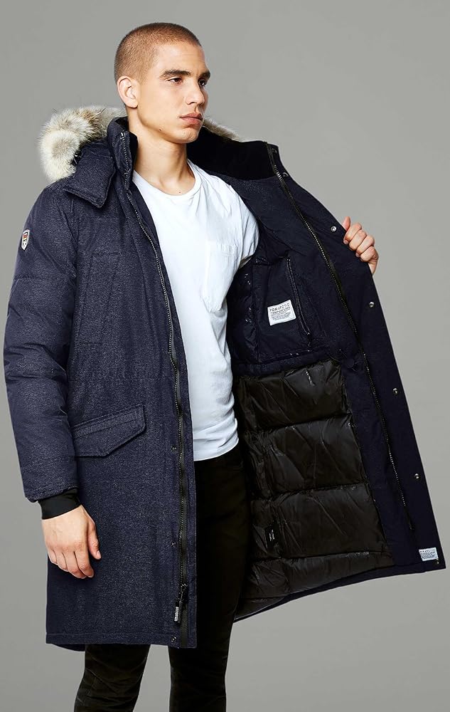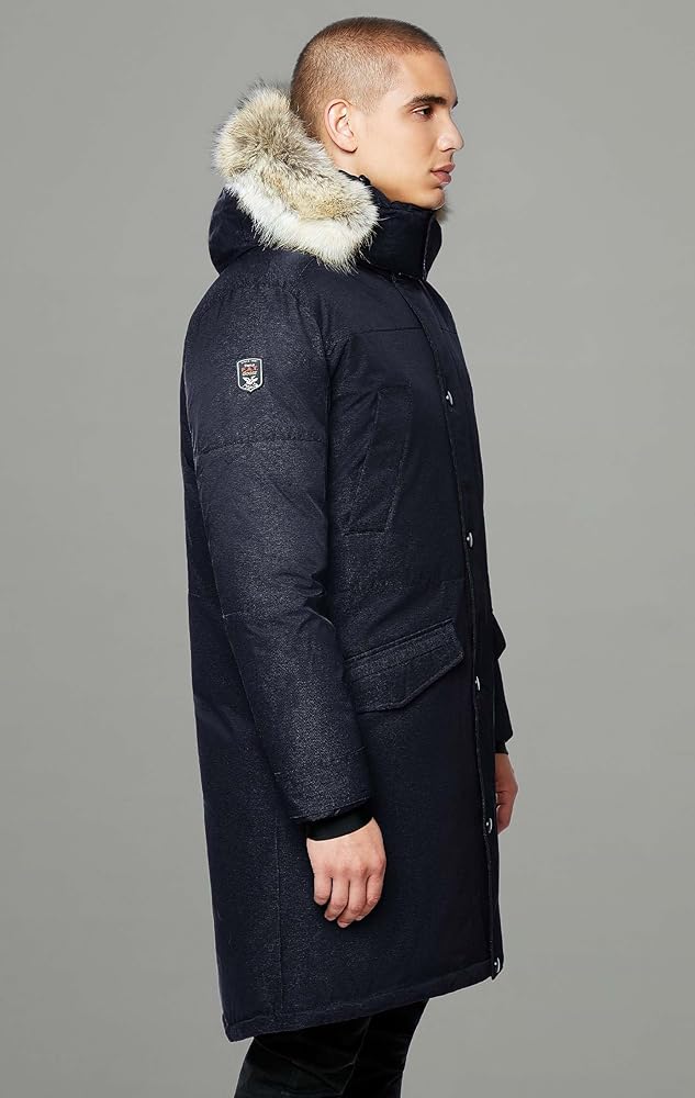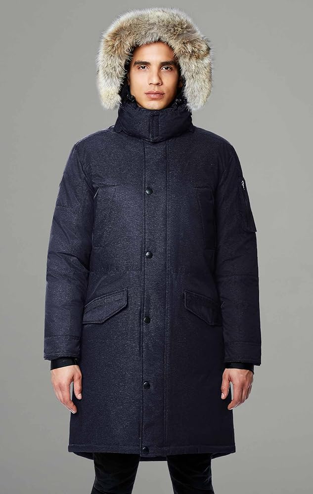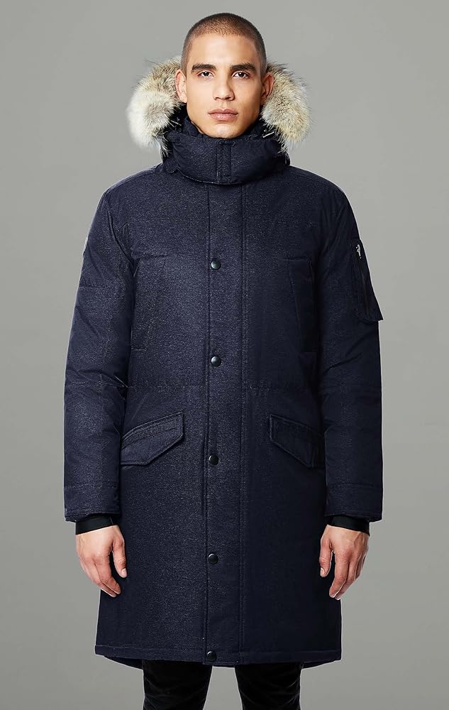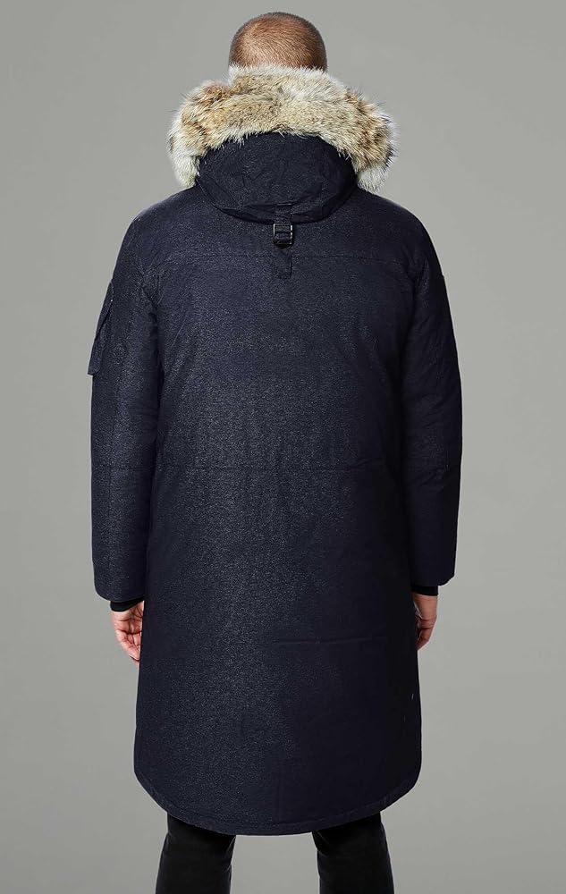 فراء الذئب الحقيقي القابل للفصل - طبقة من فراء الذئب الكندي الفاخر فائق الجودة تبطن غطاء الرأس القابل للفصل، مما يوفر الحماية لوجهك من قشعريرة الرياح. يسمح لك السلك المخفي القابل للتعديل على طول زخرفة الفرو بتعديل شكل الغطاء والحفاظ عليه وفقًا لتفضيلاتك. الفراء قابل للفصل عن القلنسوة والقلنسوة قابلة للفصل عن سترة الرجال السفلية.