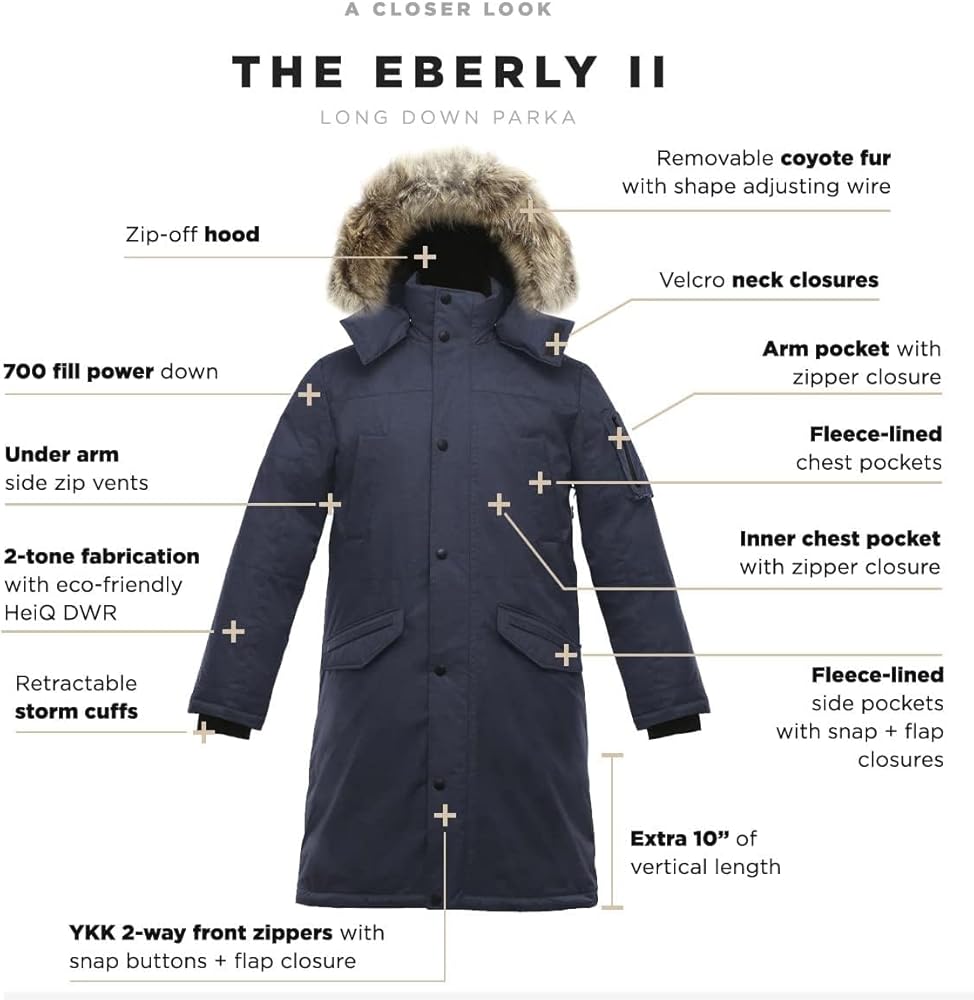 ريش الإوز الأبيض الفاخر – ثلاثي الدهون. تمتلئ سترات الإوز القطبية الشمالية بريش الإوز الأبيض الفاخر - أحد أفضل وأخف العوازل، مما يوفر دفء استثنائيًا لنسبة الوزن. يمكن للرجال من Eberly II ارتداء سترة طويلة للأسفل في الطقس القاسي، حيث تتميز بتصنيف قوة تعبئة 675، ومعبأة بوزن 17.5 أونصة. من الأسفل (على أساس مقاس متوسط للرجال).