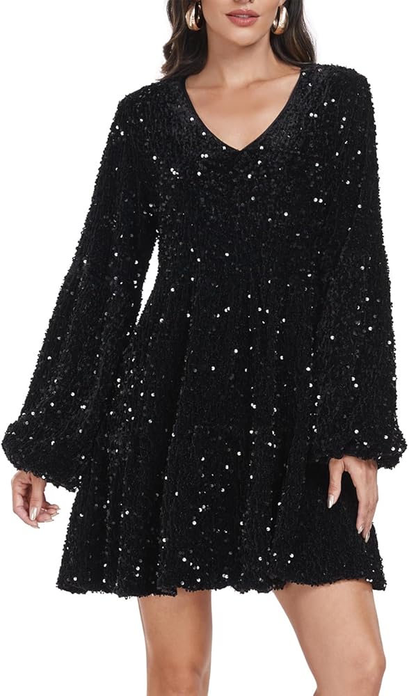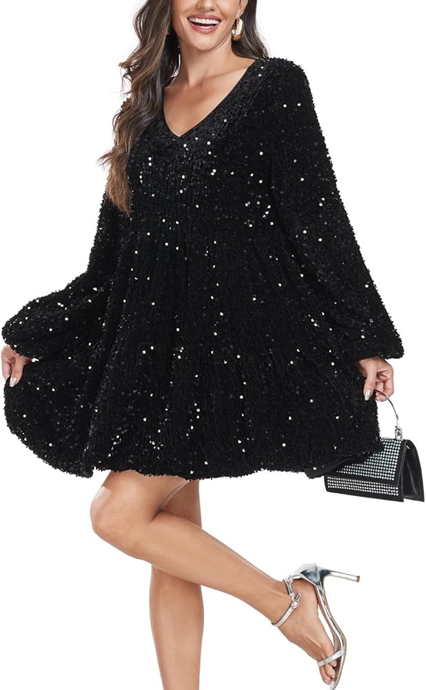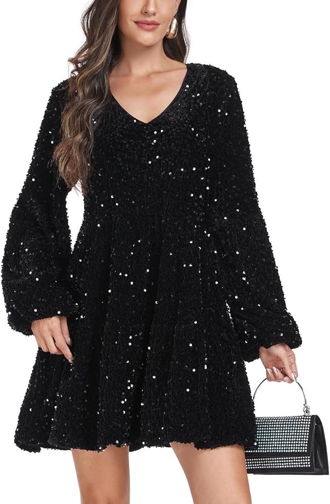 مادة مرنة: 100% بوليستر، يتمتع القماش بمرونة معينة ويمنحك شعورًا بالنعومة والراحة. ليس من السهل تشويهه، أو بهتانه، أو الشعور بالتدلي الناعم المخملي واللمعان الأنيق للترتر، مما يظهر هذا الفستان أمامك بشكل مثالي.