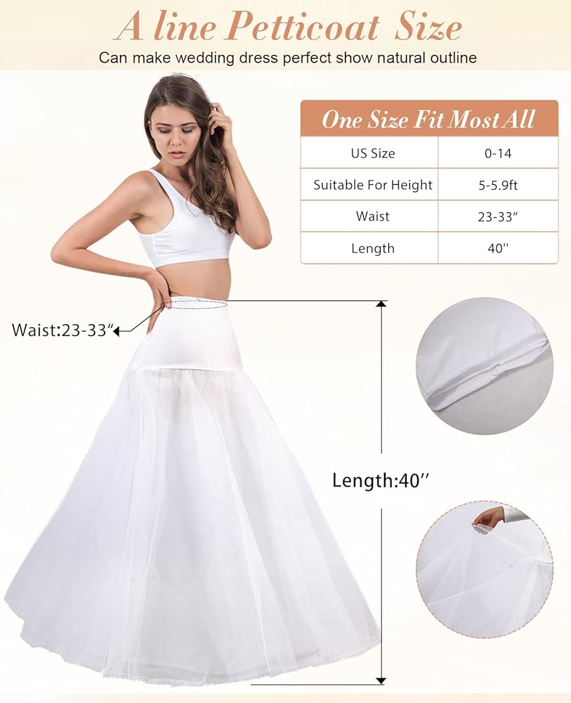 - تنورة على شكل كامل قابل للتعديل عند الخصر مع تنورة حلقية، تنورة داخلية لفستان الزفاف