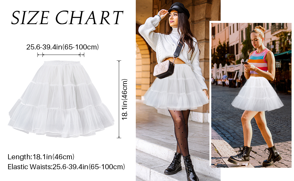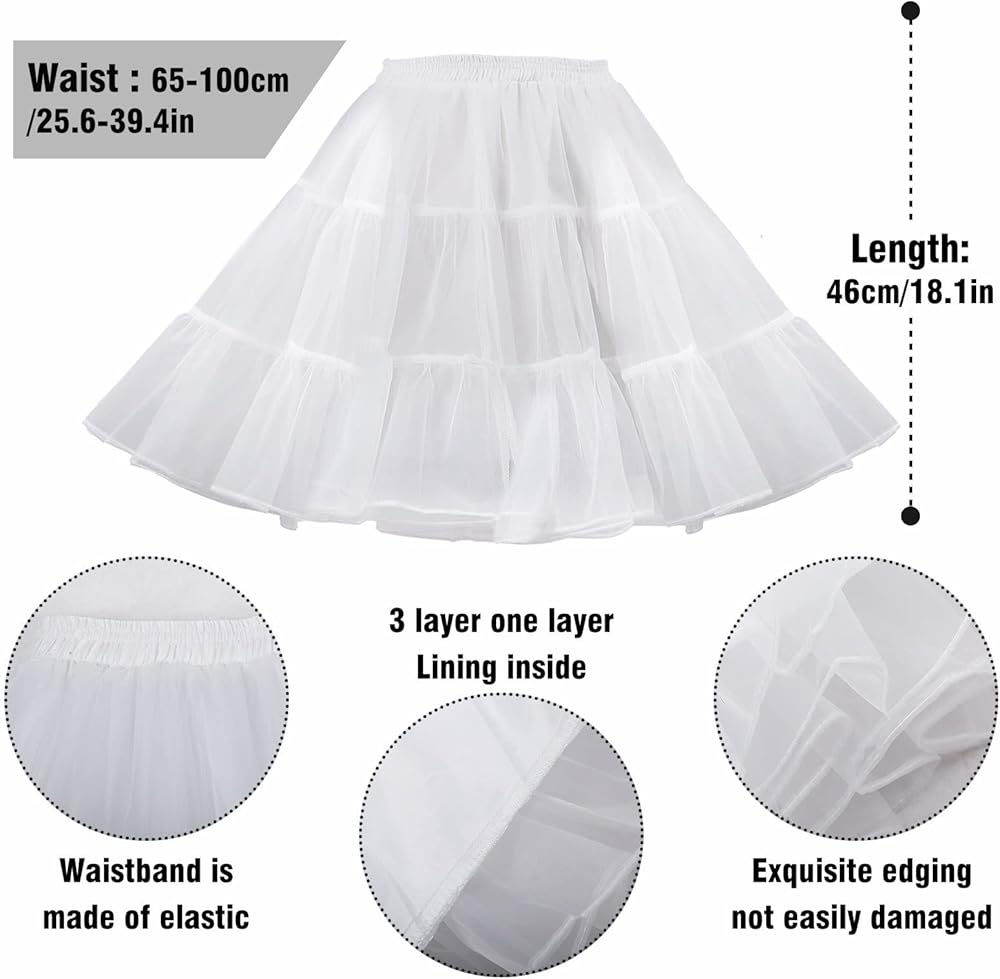 ✿ مقاس واحد من S إلى XL: الطول: 18.1 بوصة (46 سم)، الخصر المطاطي: 25 بوصة - 35 بوصة (65 سم - 89 سم)، القطر الأكبر حوالي 28 بوصة (72 سم)، يناسب الولايات المتحدة 2-18. زلات النساء الكلاسيكية قابلة للتمدد مما يجعل من الممكن ارتداء التنورة الداخلية على مستوى منخفض على الوركين لمزيد من الطول أو أعلى فوق خصرك لفستان أقصر.