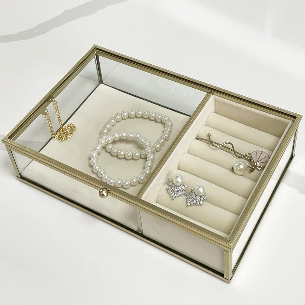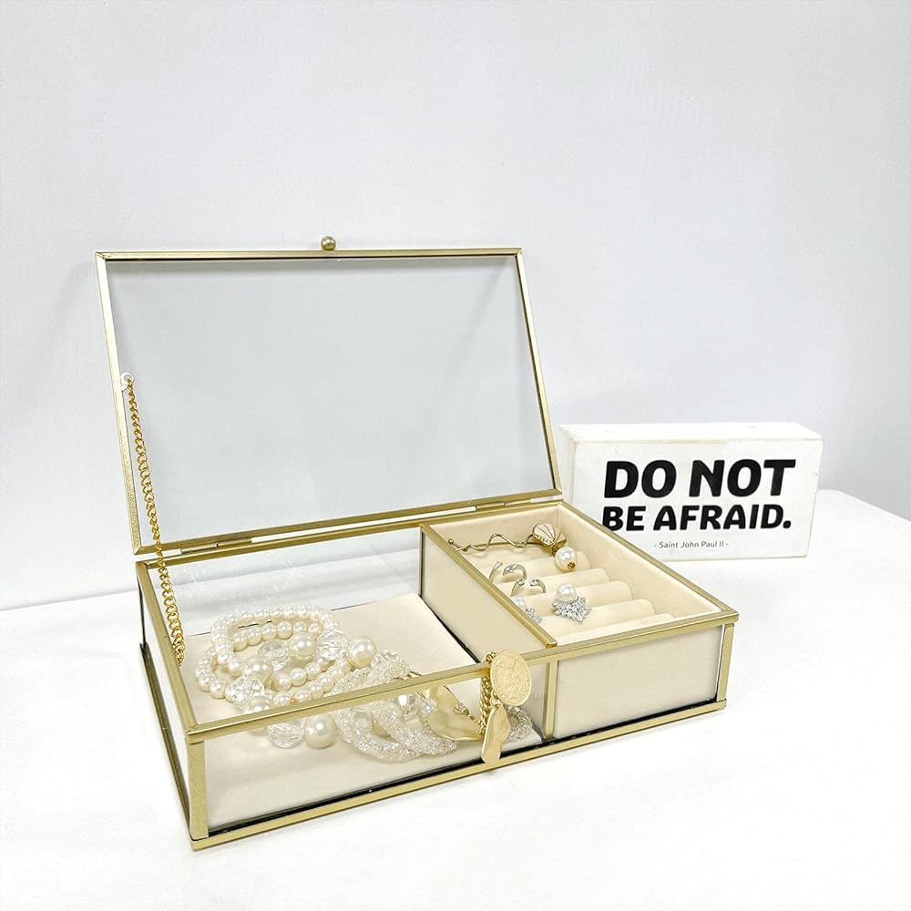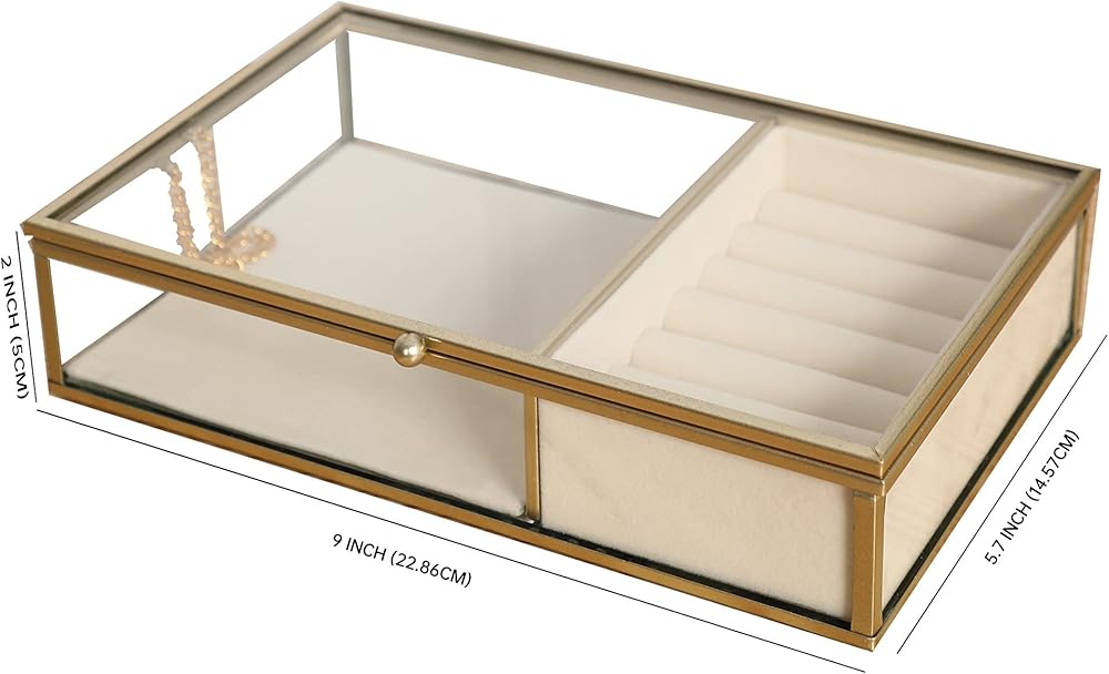 • صندوق تخزين مريح: إذا كنت ترغب في توفير مكان أكبر على خزانة الملابس أو قمة الزينة الخاصة بك، أو إذا كنت ترغب في الاحتفاظ بجميع مجوهراتك في مكان واحد، أو تخزين مجموعتك التي لا تنسى كتذكار ترغب في الاحتفاظ به بأمان على الشاشة، فهذه المجوهرات الزجاجية مربع سوف يساعدك.