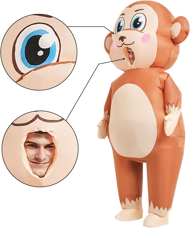 🎃مناسبات متعددة الاستخدامات: زي القرد القابل للنفخ مثالي لملابس الهالوين والحفلات التنكرية والحفلات ذات الطابع الخاص والعروض المسرحية ولعب الأدوار. استعد لتفجير حفلتك مع زي القرد المضحك الرائع القابل للنفخ!