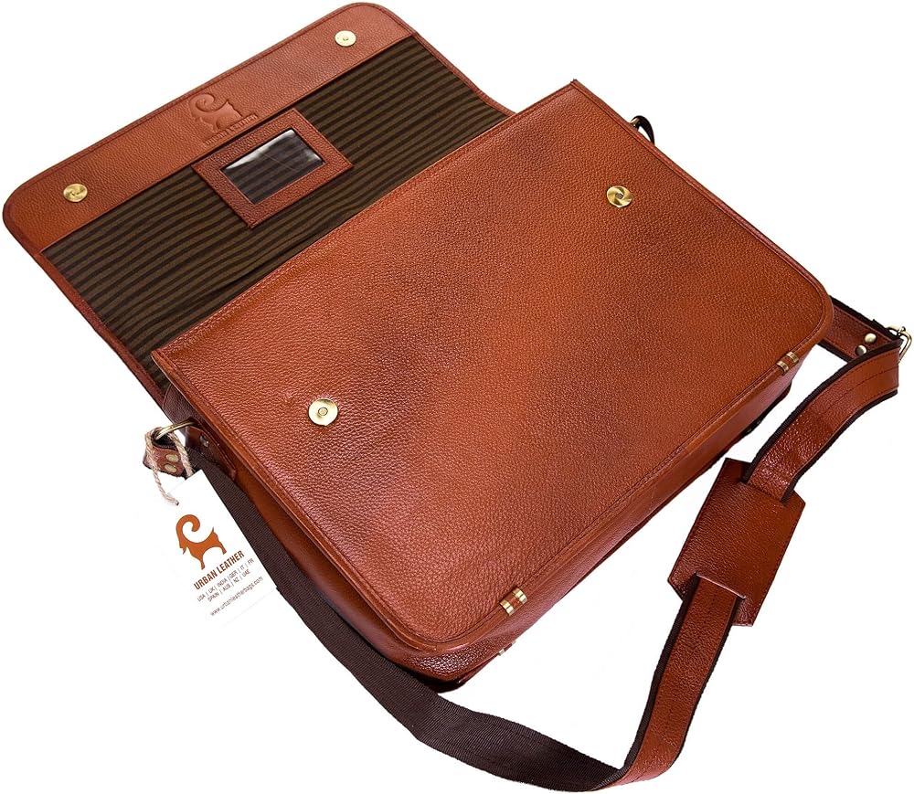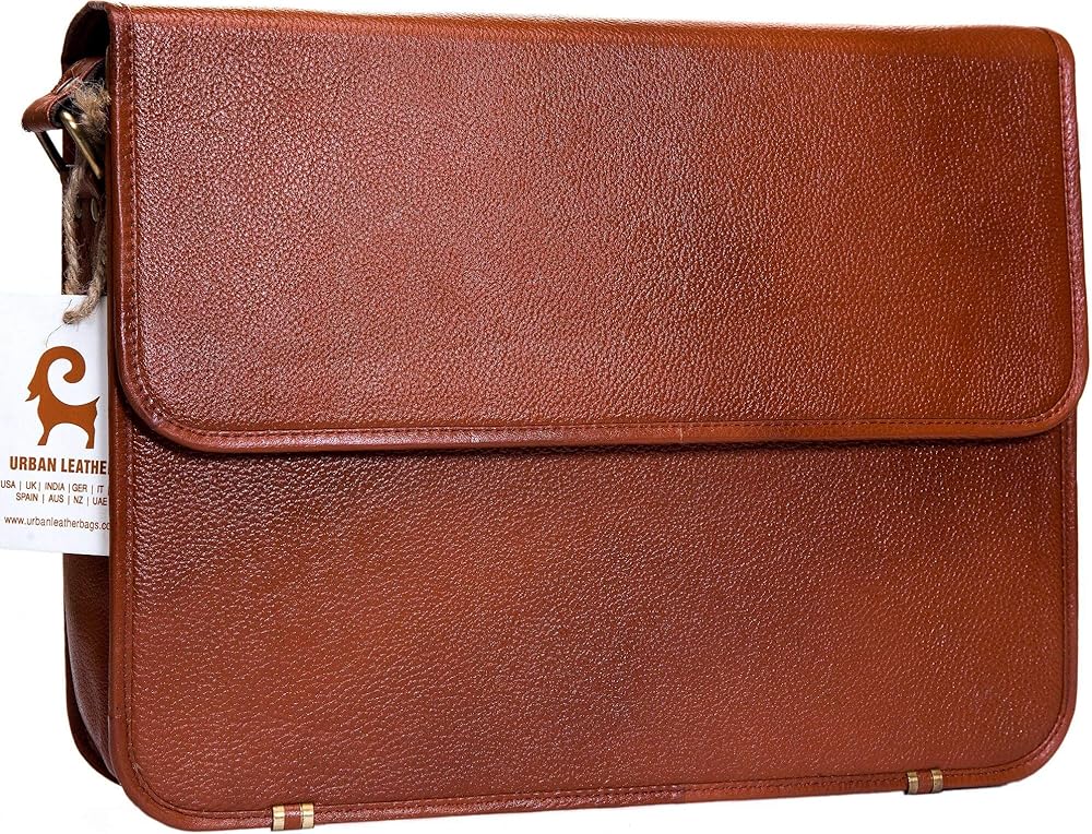 شنطة كروس من الجلد من اوربان ليذر للسفر والمكتب واللابتوب والكلية والجامعة للرجال والنساء، لون بني عتيق، مقاس L 15 انش، بني, بني, Compact size 15x11x4 inch fits all