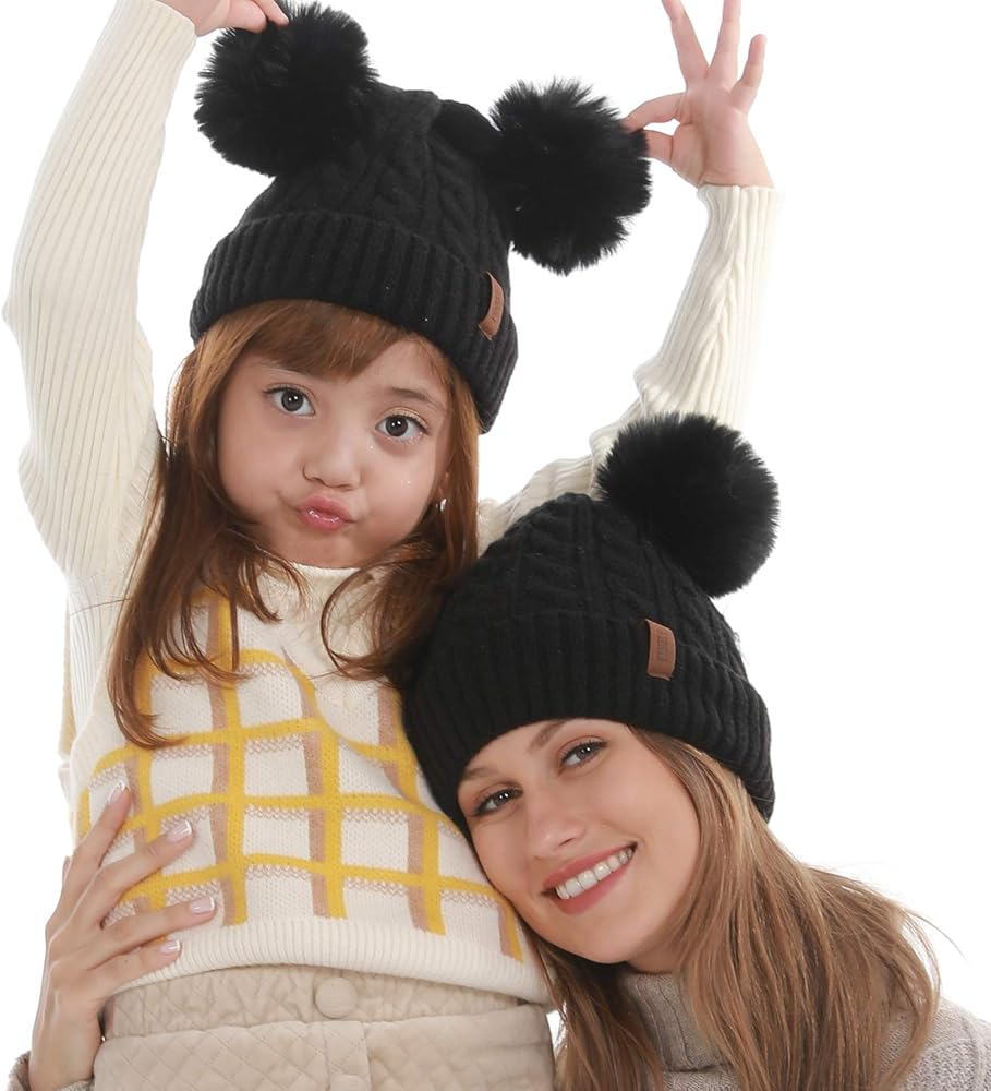 قطعتان من قبعات الأم والطفل المتطابقة للأطفال في فصل الشتاء الدافئ للأولاد والبنات والابنة والأم