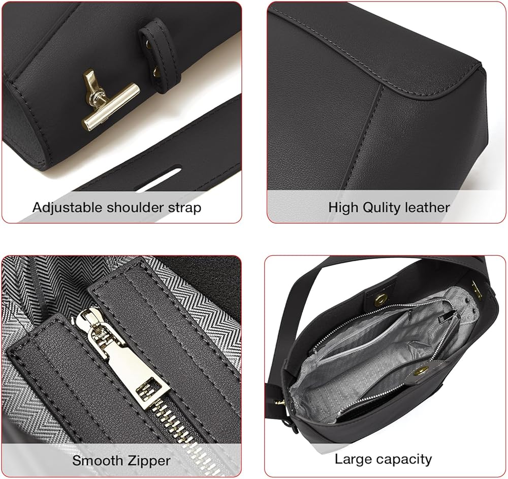 • [المزايا] - حقيبة الدلو مصنوعة على يد حرفيين محترفين، تتميز بمظهر دقيق وجذاب وقوي. تتميز حقيبة الكتف النسائية الخاصة بنا بتصميم ملون جميل وكلاسيكي وأنيق، خاصة للنساء الأنيقات.