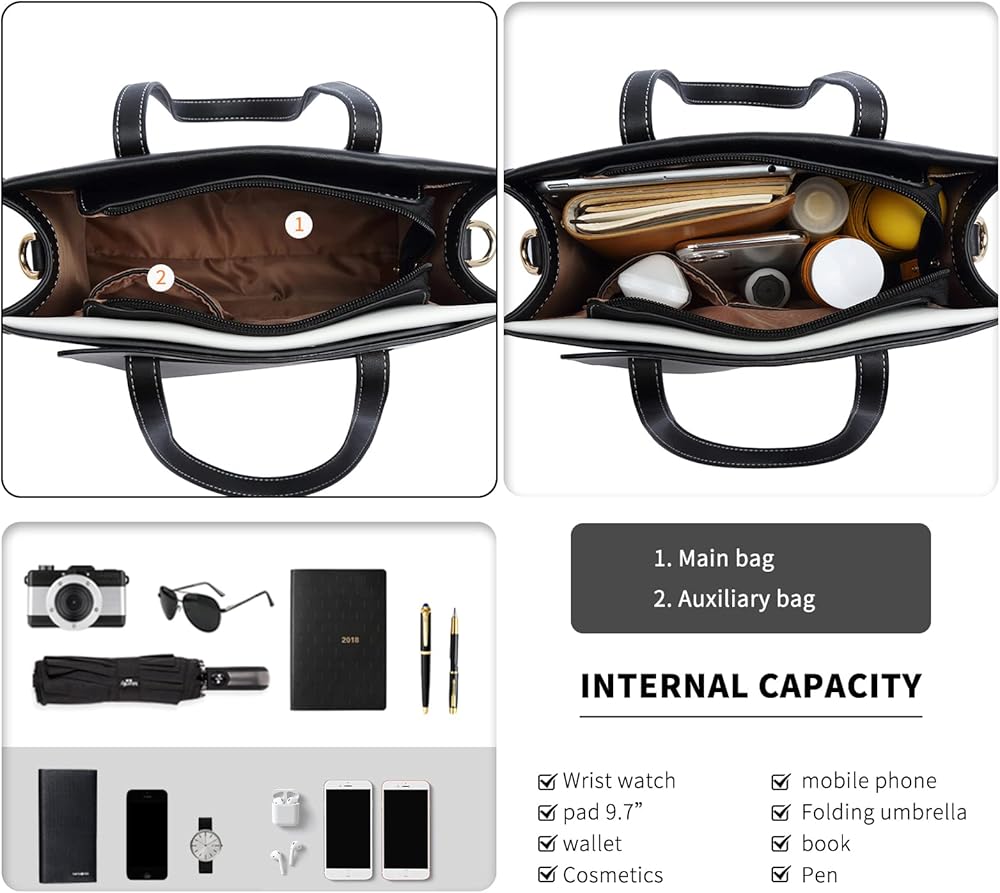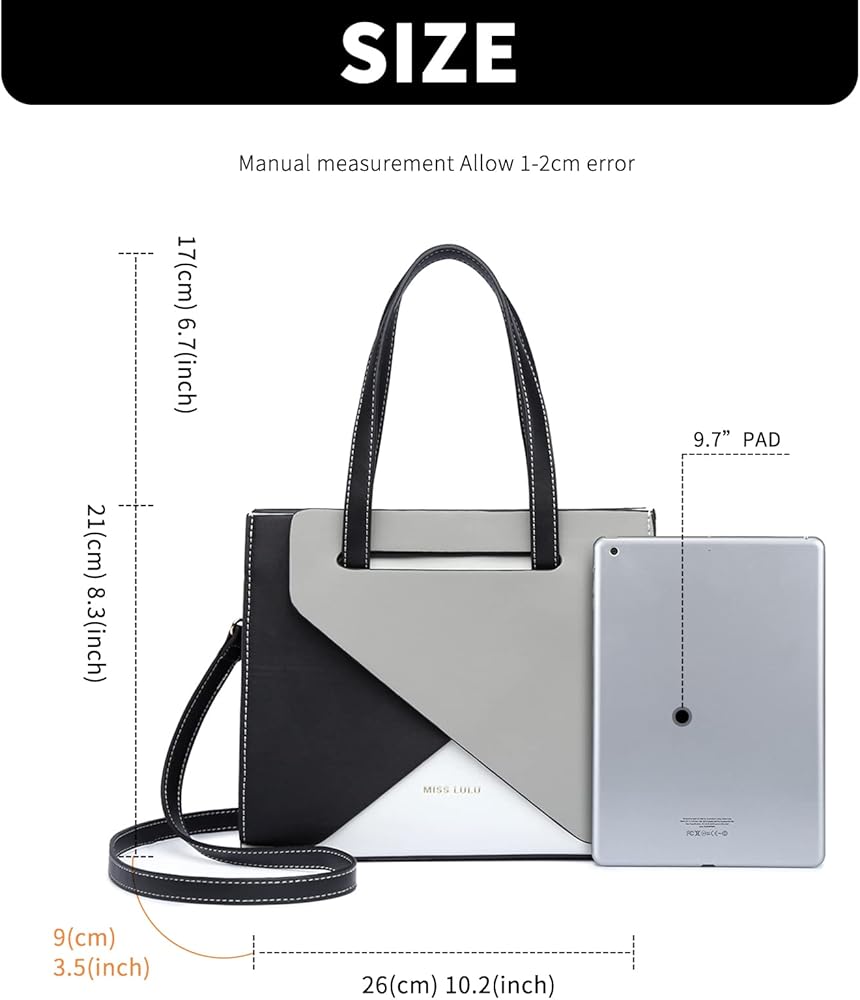 السعة: حقائب اليد الأنيقة للنساء رائعة لحمل المحافظ والهواتف وأجهزة التابلت والكتب والمفاتيح والمكياج وغيرها من الأشياء اليومية. حمل حقائب اليد الأنيقة هذه معك هو أفضل طريقة لتفتيح يديك وتوفير الوقت. ملاحظة: تتميز حقائب اليد المصممة للنساء بسعة محدودة ولا يمكنها حمل أجهزة اللاب توب