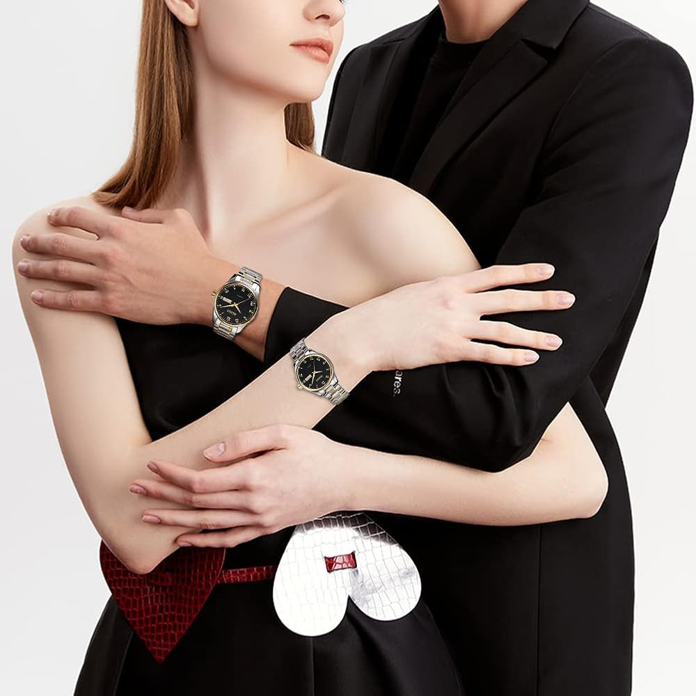 💗تصميم كلاسيكي أنيق للأعمال: حزام فاخر عالي الجودة من الفولاذ المقاوم للصدأ مع هيكل دائري ذهبي كلاسيكي، ساعة وجه سوداء تم تصميمها بعناية لتتحمل اختبار الزمن.