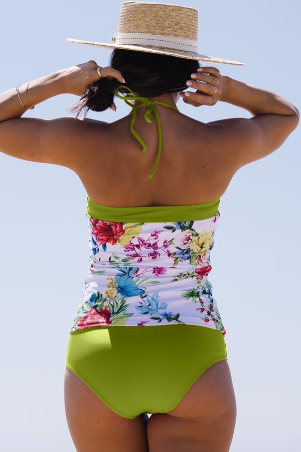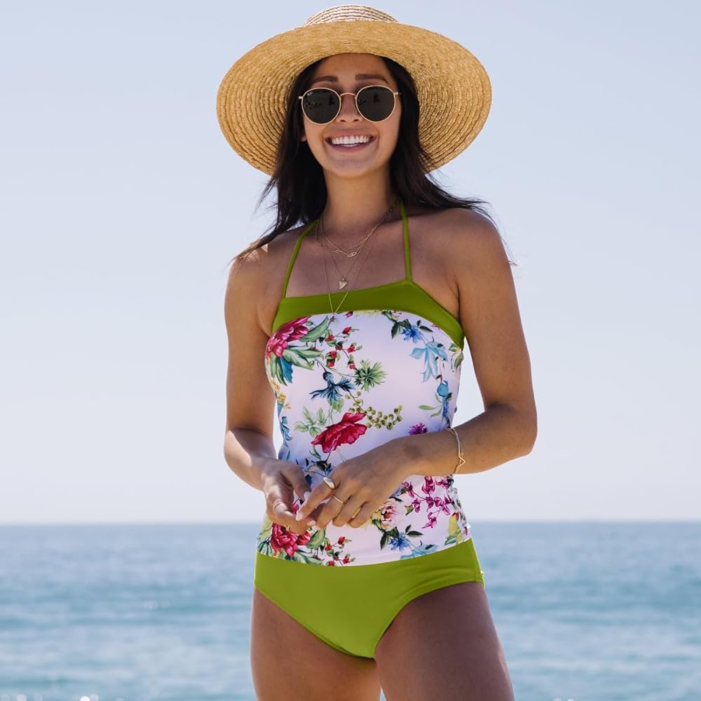 التصميم: طقم تانكيني، بدلة سباحة قطعة واحدة مطبوعة بالورود للتحكم في البطن، طقم تانكيني جانبي برباط مع وسادات إسفنجية ناعمة قابلة للإزالة تمنحك شكلاً جيدًا