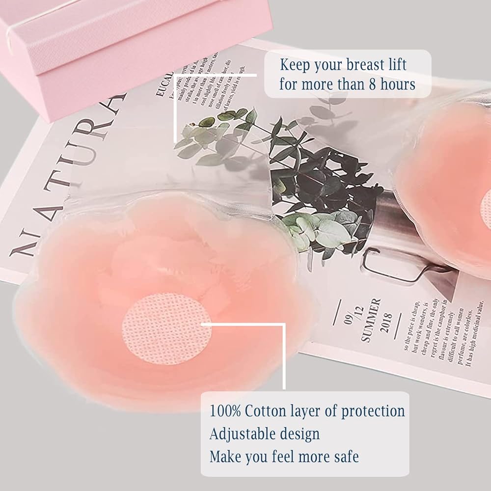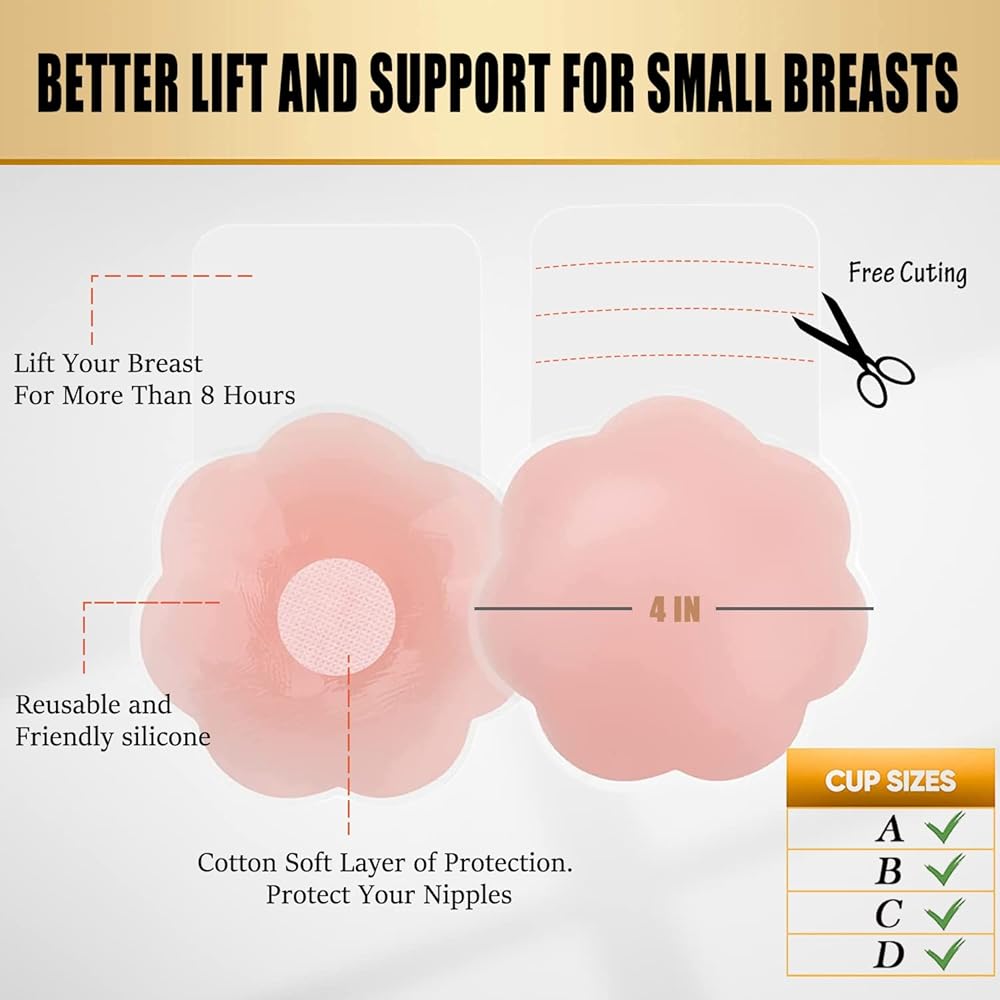 【مادة آمنة وصديقة للبيئة】سوف تأتي مع زوج واحد من الزهور وزوج واحد من غطاء حلمة الرفع الدائري مع 10 قطع شريط مزدوج الجوانب. هذه الصدرية اللاصقة مصنوعة من السيليكون الطبي عالي الجودة. مما يضمن قدرتها على البقاء في مكانها بشكل آمن لتوفير الدعم لثدييك. المواد الناعمة والصديقة للبشرة دون أي رائحة نفاذة تمنحك الراحة ولا تسبب التهيج لبشرتك.