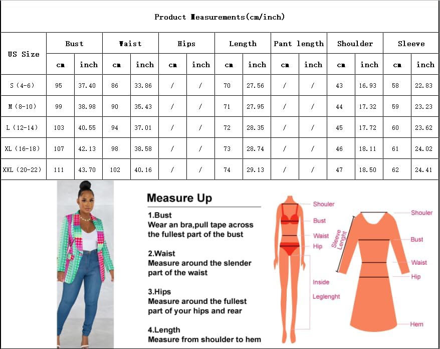 ملاحظة - سترات المكتب طويلة الأكمام بها زر إغلاق واحد، الجيب مخصص للزينة فقط، الطول حتى الفخذ، يغطي الوركين بشكل كافٍ، قد يكون للارتفاعات المختلفة تأثيرات ارتداء مختلفة. الطول: S- 28.0 بوصة، M-28.3 بوصة، L- 28.7 بوصة، XL-29.2 بوصة، XXL-29.5 بوصة