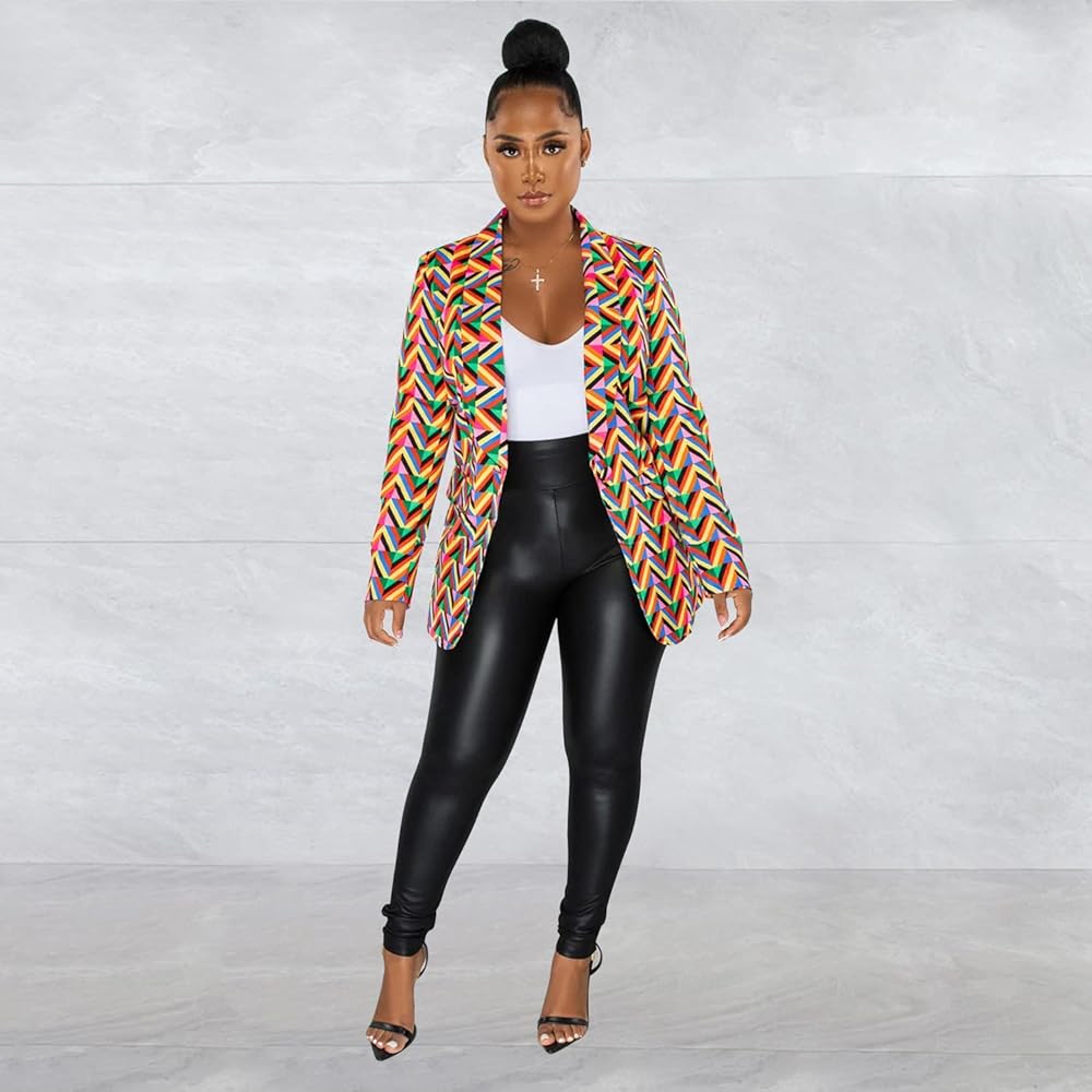 المزايا: زر واحد للأسفل، طباعة مموجة، كتل ملونة، جرافيتي، نمط هندسي، كم طويل، بدون قمة، ياقة مطوية إلى الأسفل، طية صدر أنيقة، غير مبطنة، جيوب صناعية، سترات بليزر مفتوحة أمامية للعمل المكتبي، سترة بدلة احترافية OL، سترات صوفية للشارع ،بلايز السترة النسائية على الموضة، معطف خارجي لخريف وشتاء، سترة عصرية للحفلات والنوادي الليلية، فستان قصير